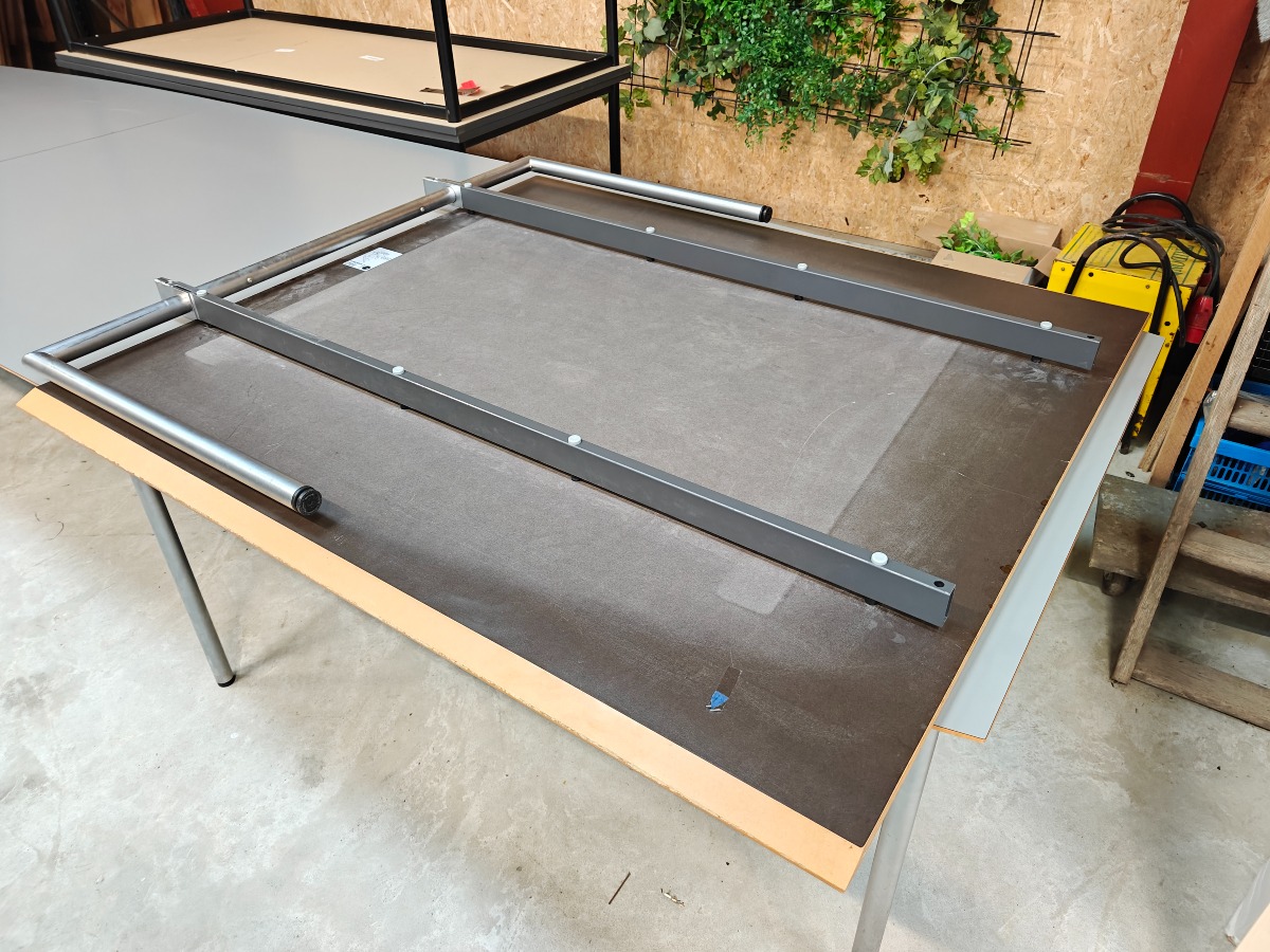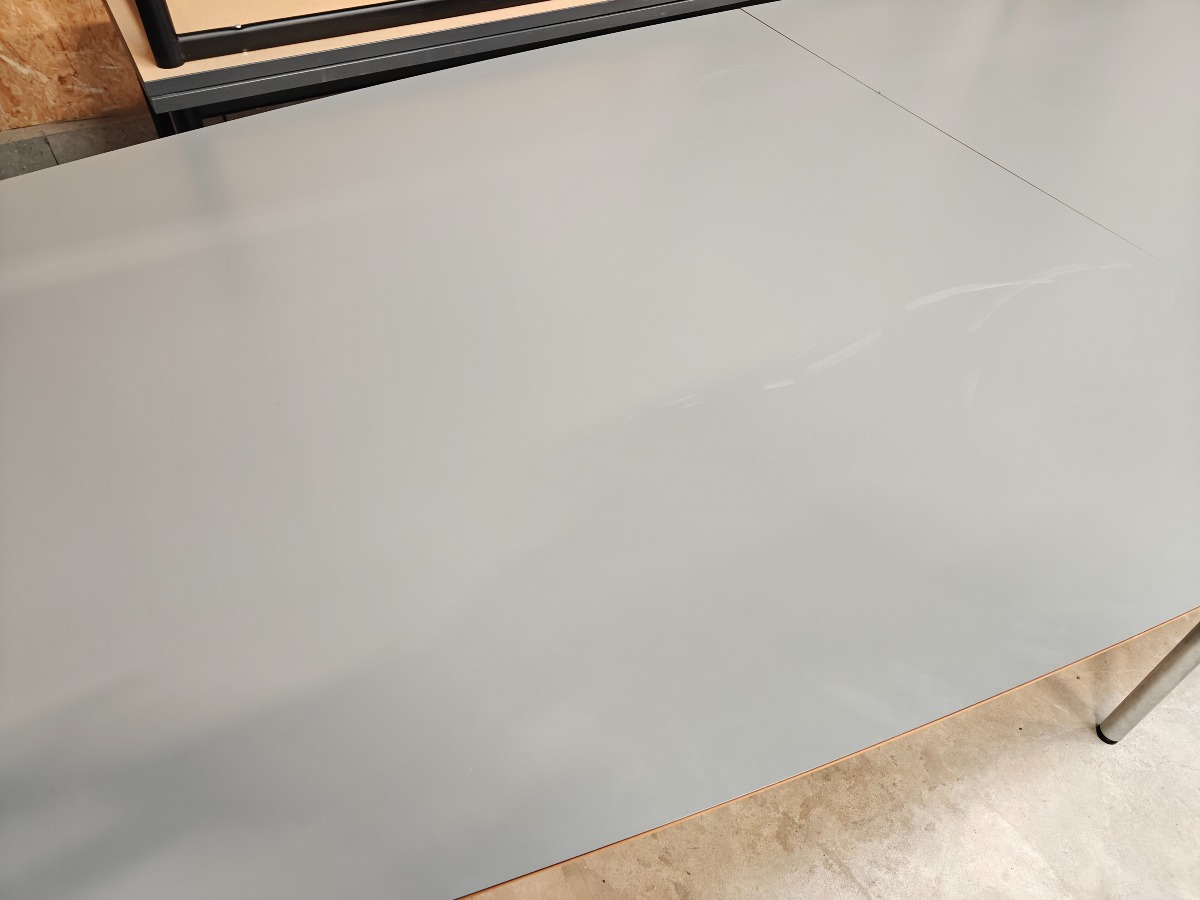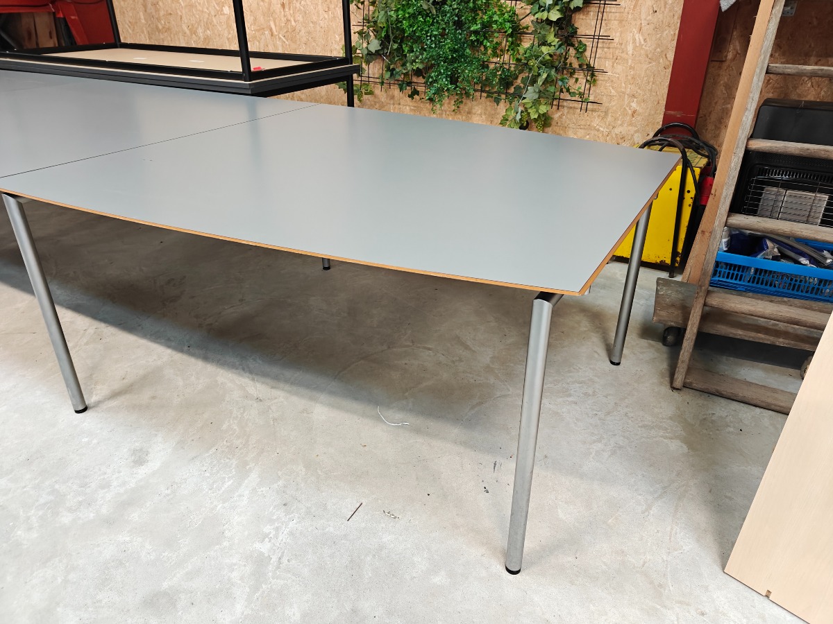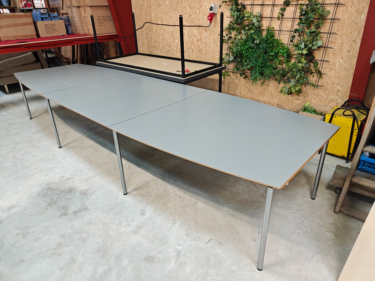 Randers Møbelfabrik, stort konferencebord bestående af 4 moduler. 2 rektangulære og 2 let ovale. Modulmål: H. 72, B. 140, D. 130 cm. Fremstår med minimale brugsspor.