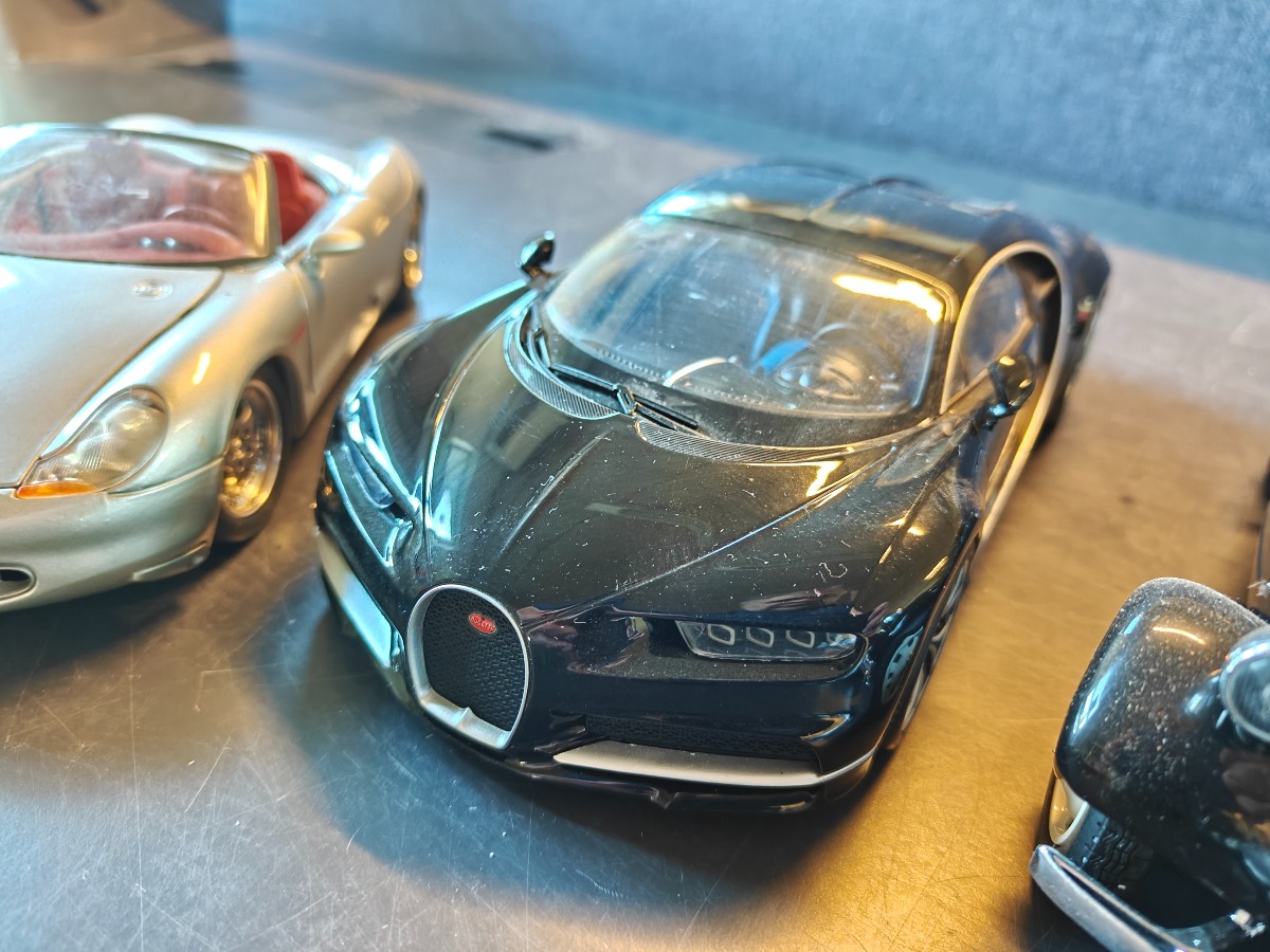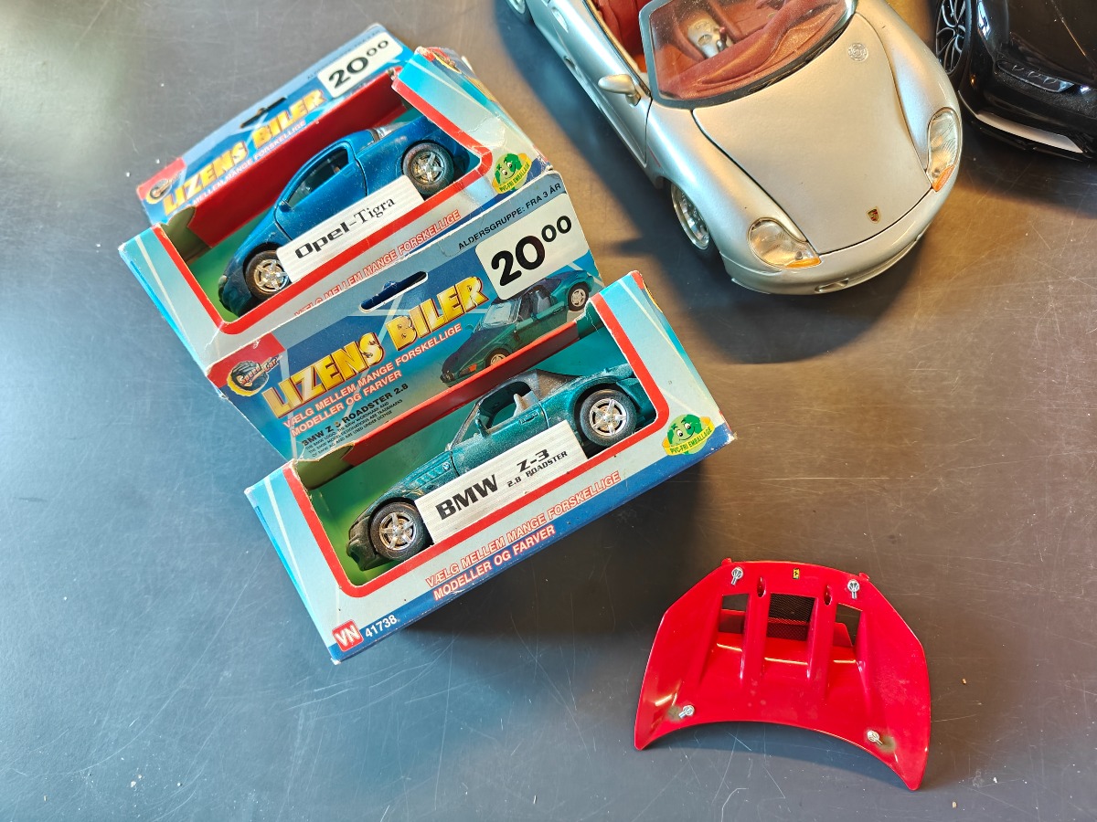 Modeller af europæiske biler Skala 1:18.  Samt 2 små modeller fra Speed Car. Vi garanterer ikke for eventuelle skader og mangler.