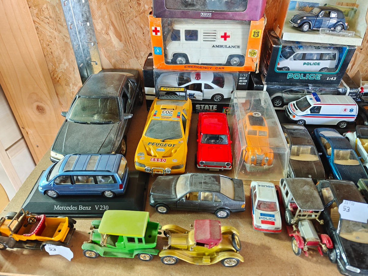 Stor samling modelbiler. Mange forskellige skalastørrelser og fabrikater. Skader og mangler forekommer.