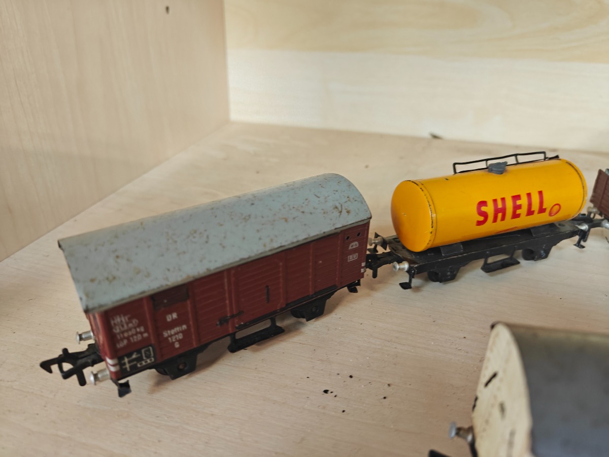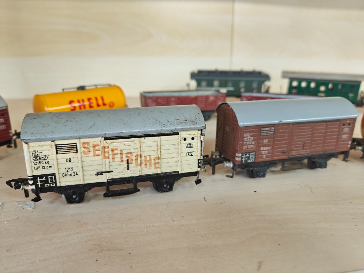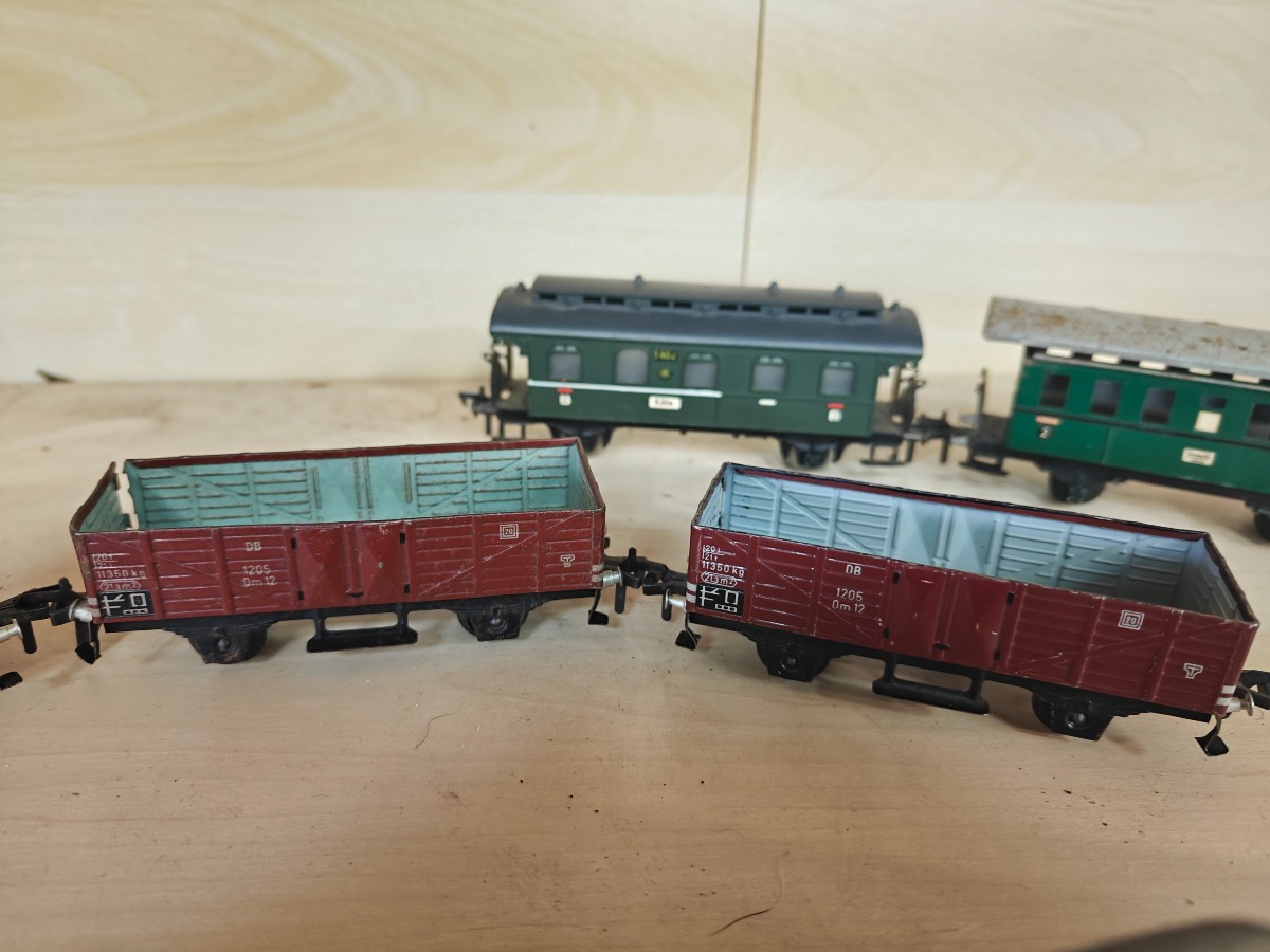 Fleischmann vogne. Både gods og persontransport. Alle stemplet Made in U.S. Zone Germany. Fremstår med brugsspor.