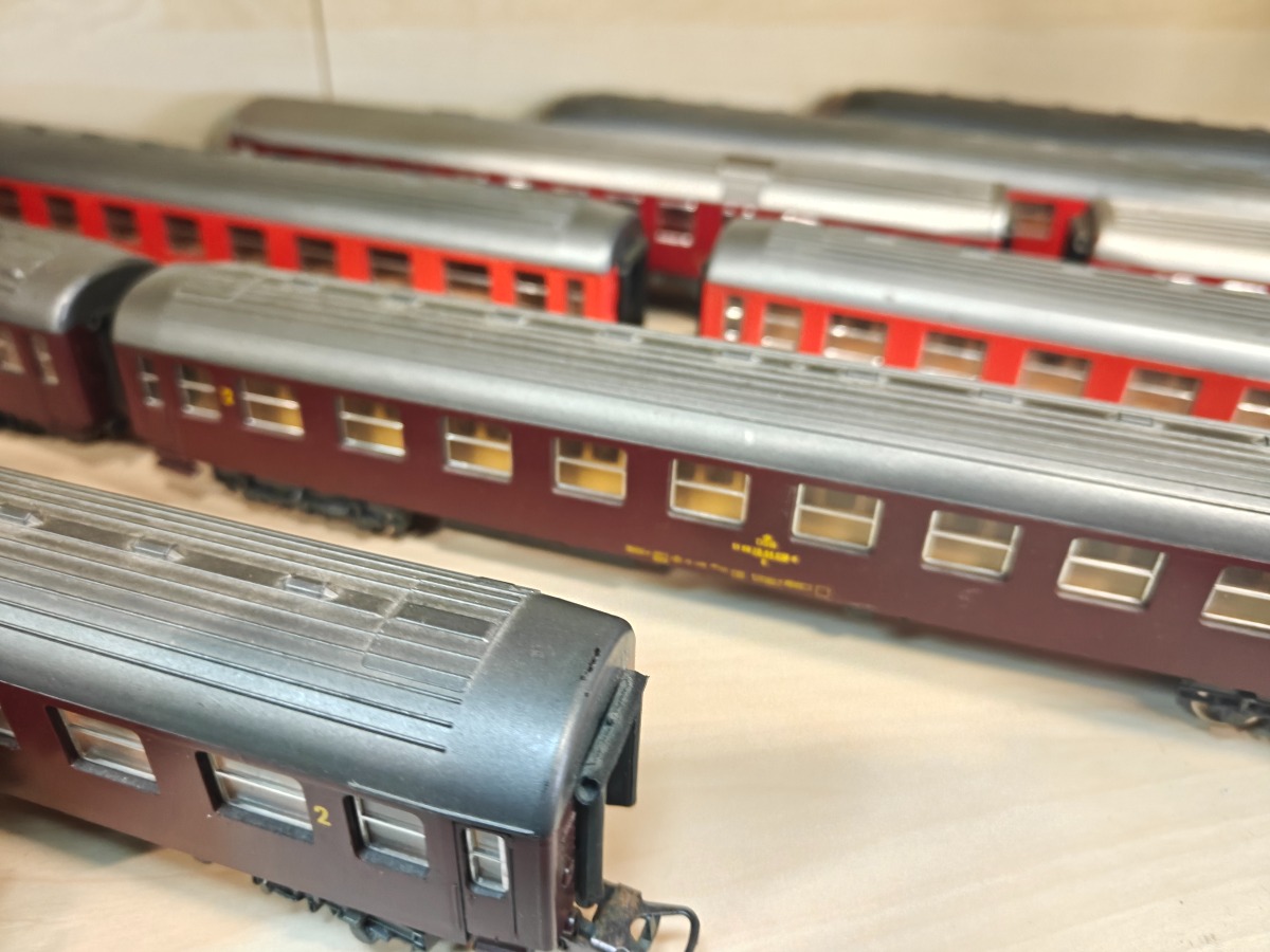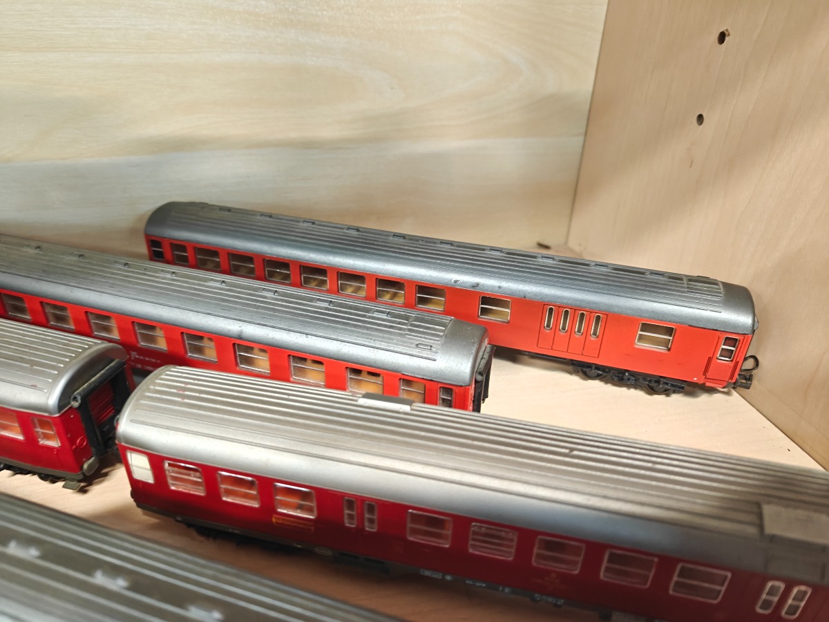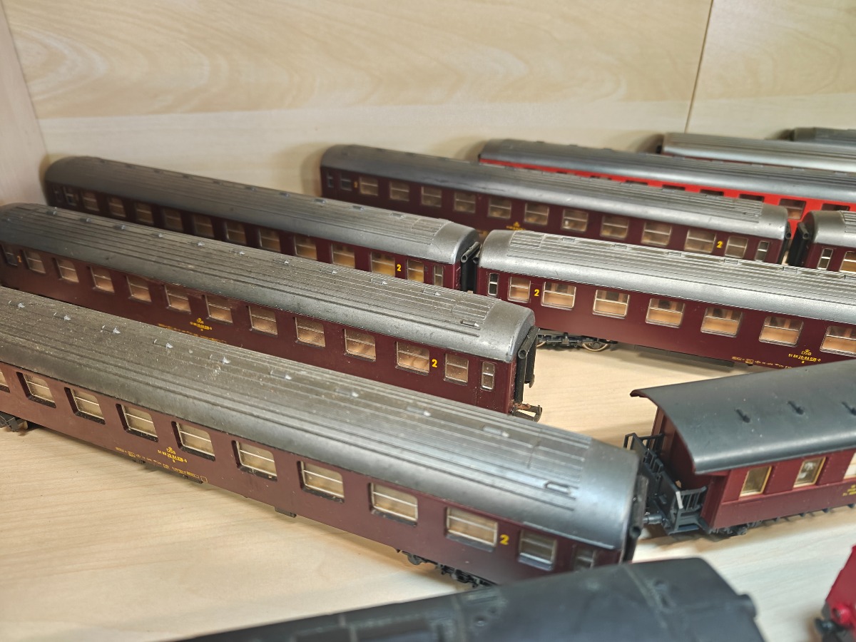Lima MZ lokomotiver samt personvogne. 2 MZ lokomotiver samt personvogne fra 3 perioder. Delene med alm. brugsspor.