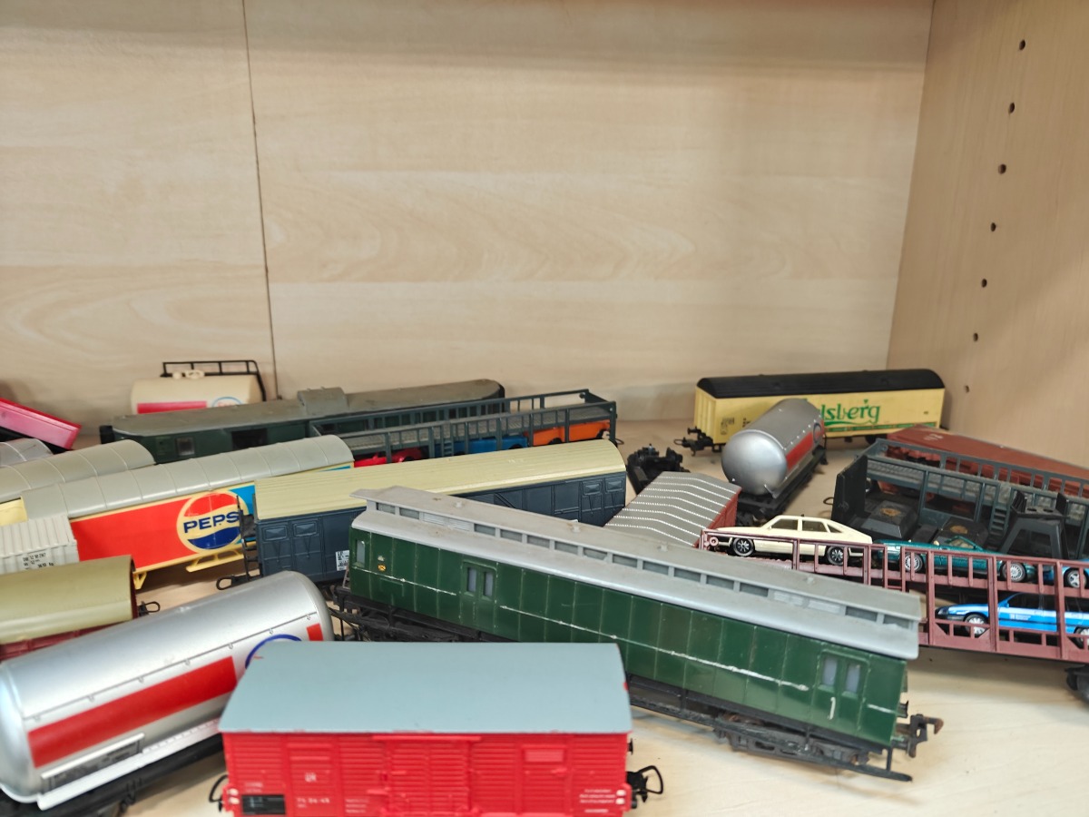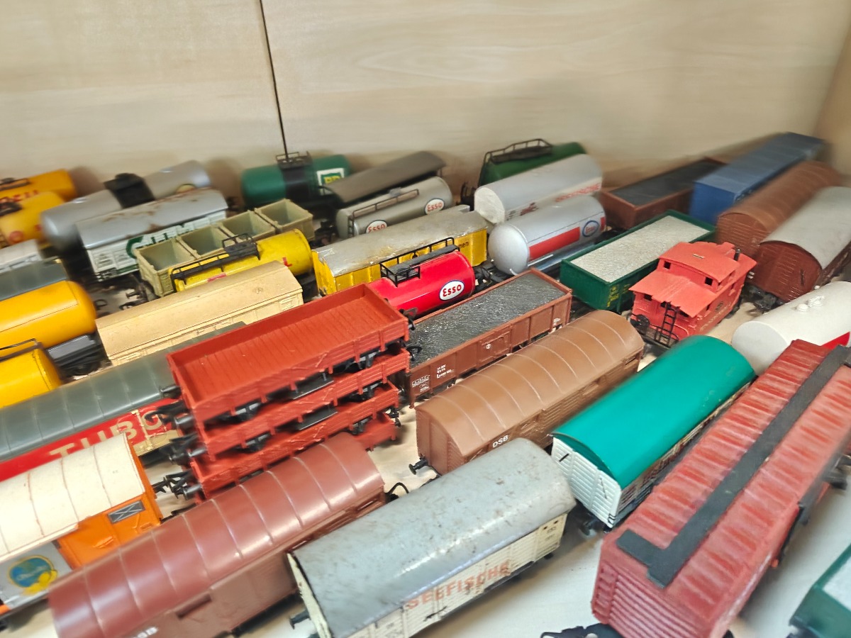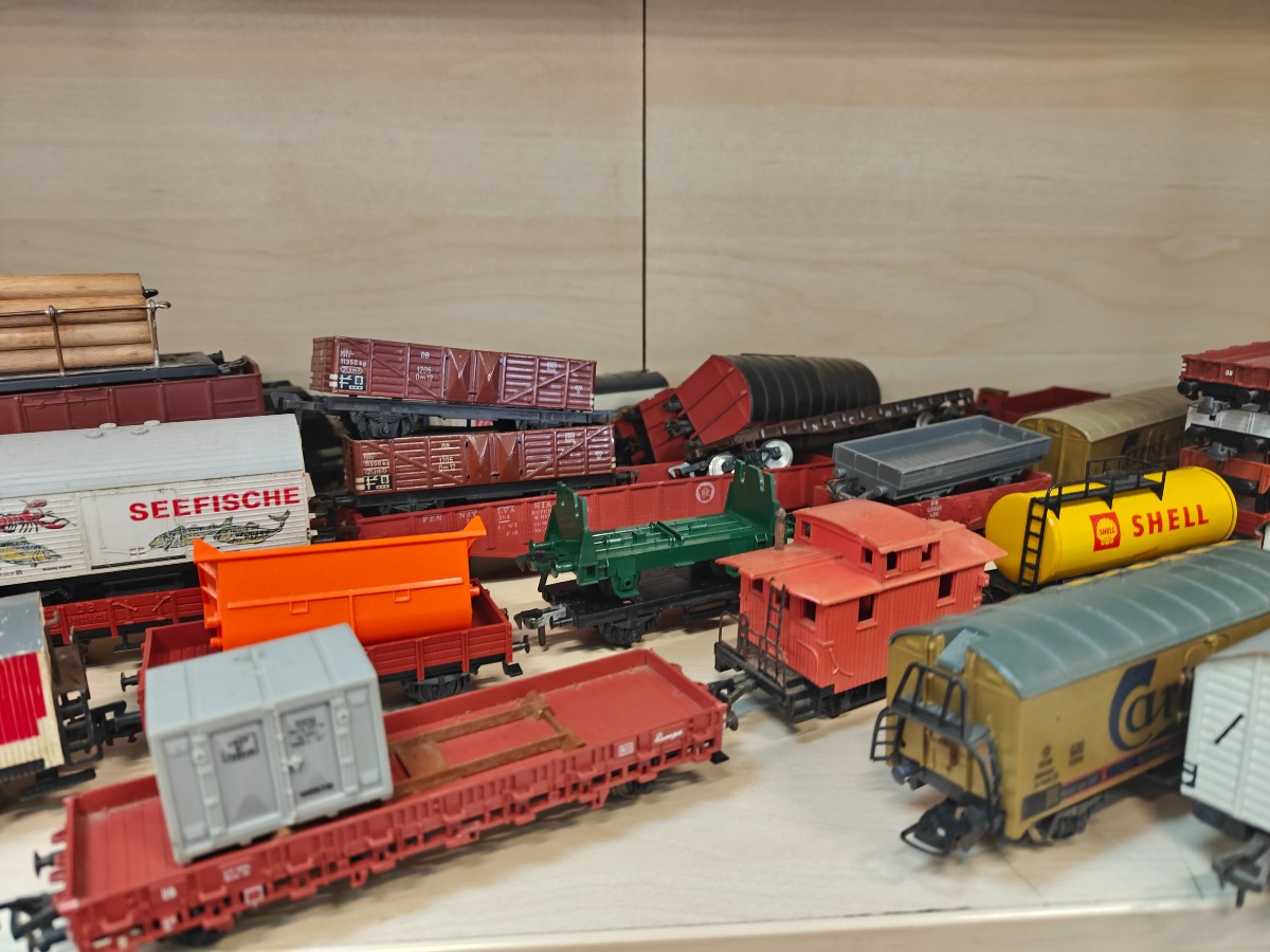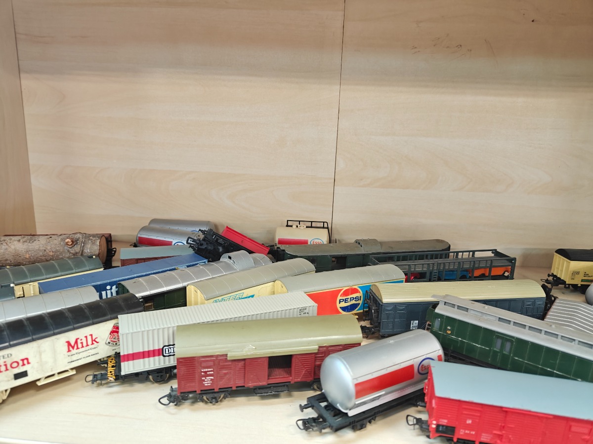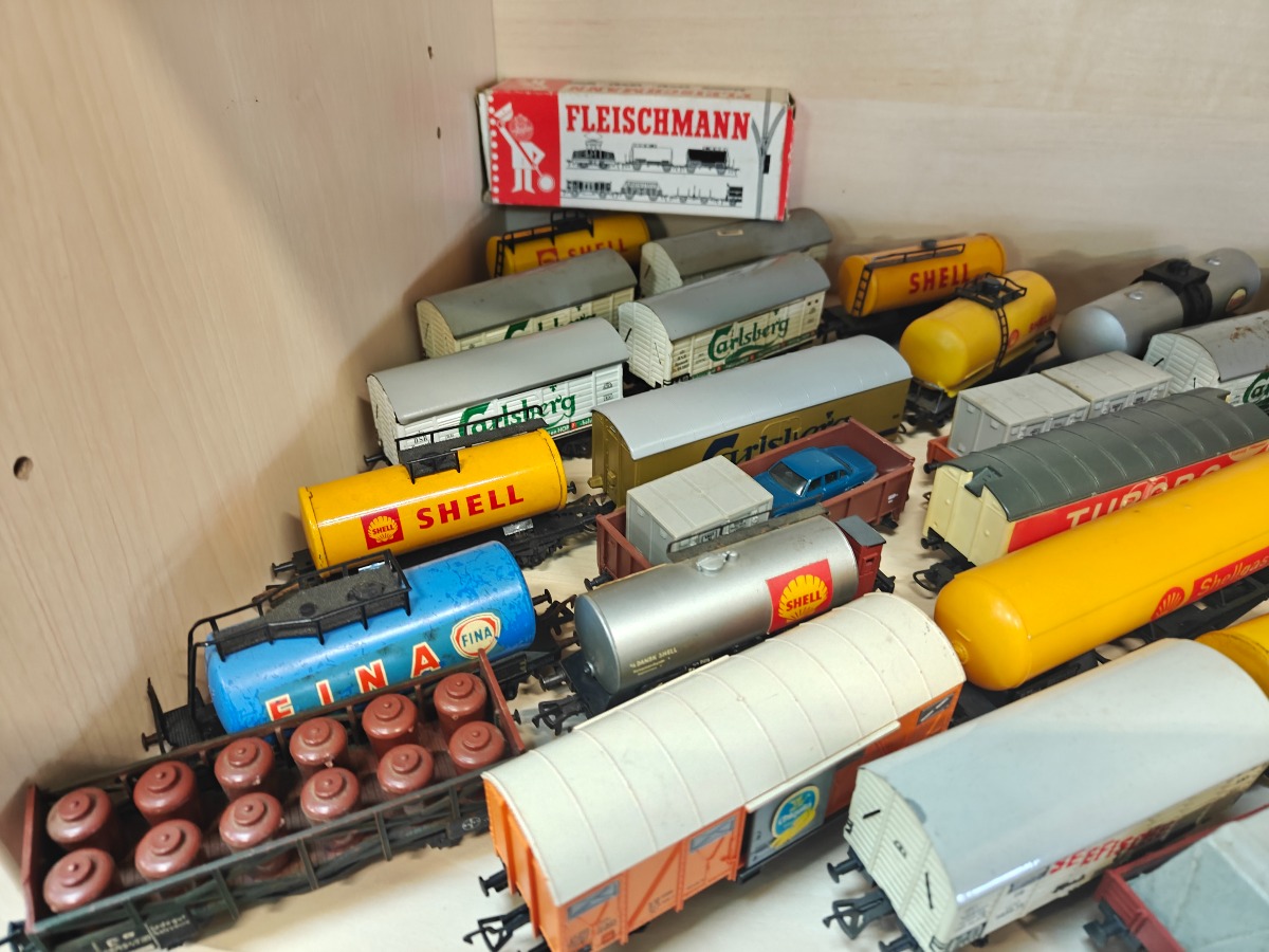 Stor samling Fleischmann godsvogne. Lima og andre mærker kan forekomme. Brugt, men god stand.