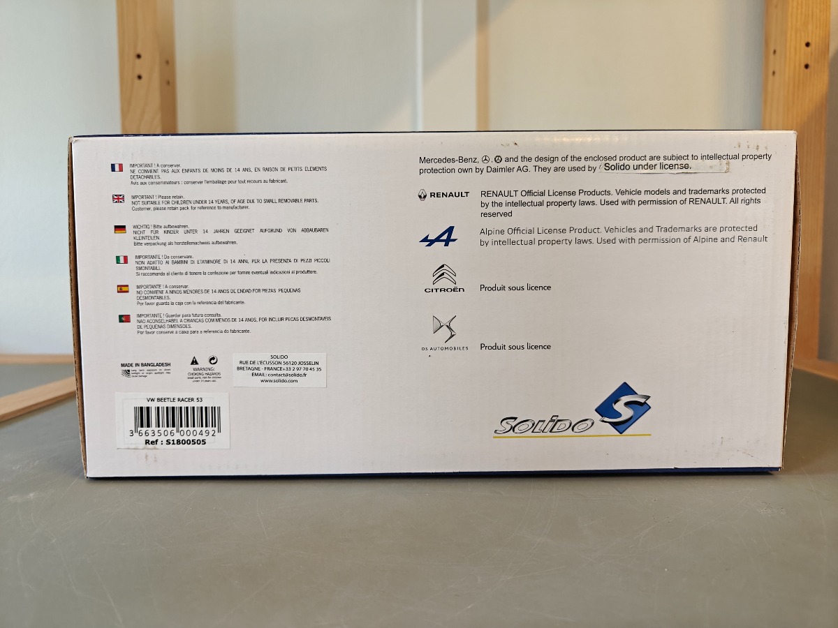 Solido model af Volkswagen Beetle "Racer 53" 1:18