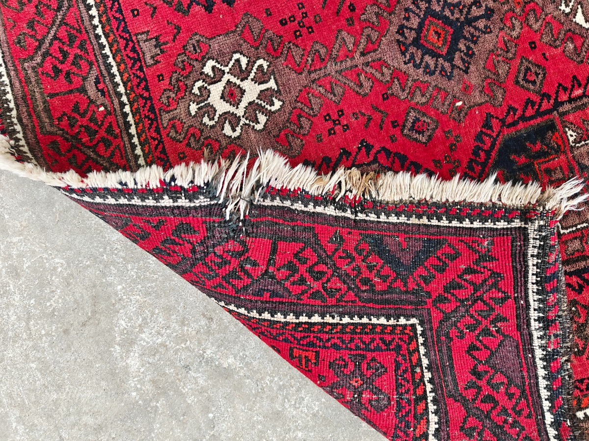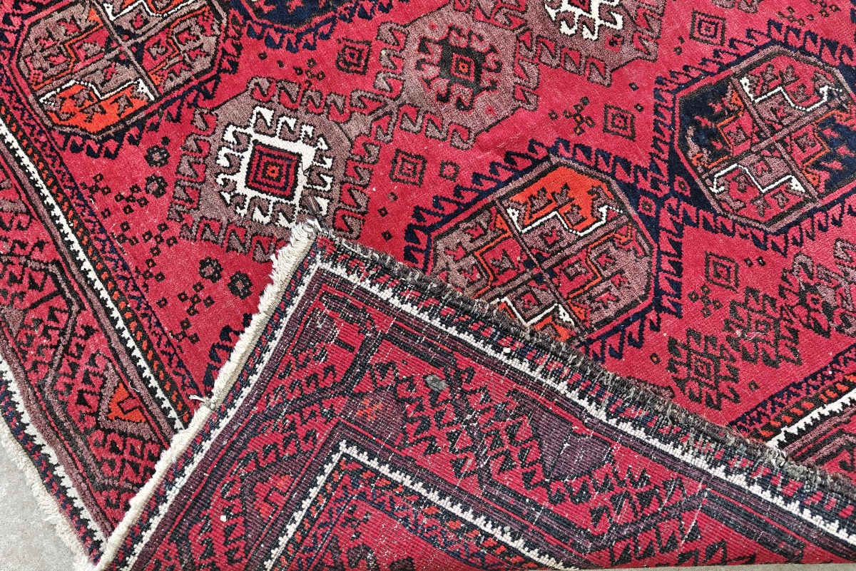 Afgansk tæppe 200 x 115 cm. Der er slid flere steder, mest langs kanterne.