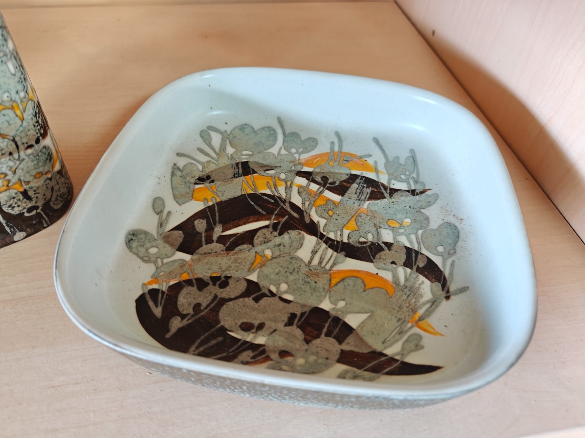 Ivan Weiss for Royal Cph. Fajance Siena serien. Lille vase og firkantet fad.