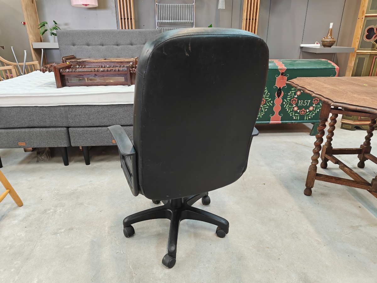 Kontorstol med armlæn. Sæde og ryg monteret med kunstlæder.
