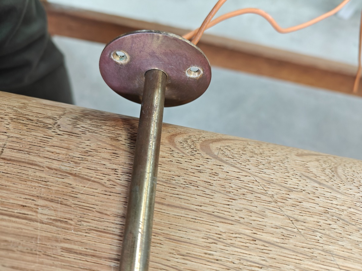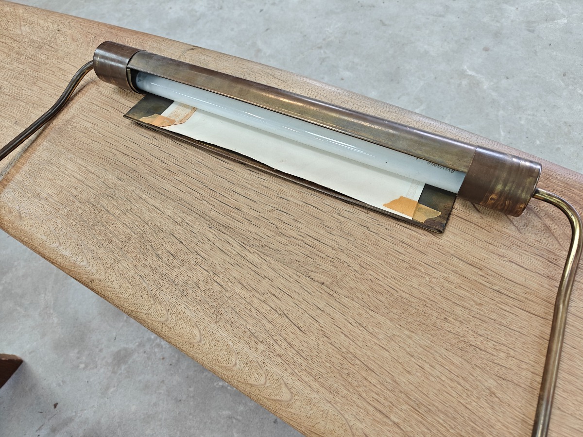 Messinglampe, tidligere belysning til orgel. 60 x 32 cm.