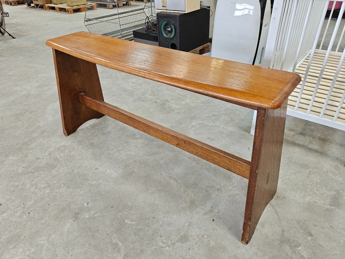 Orgelbæk af lakeret eg. Sæde med buet front. 66 x 130 x 30 cm.