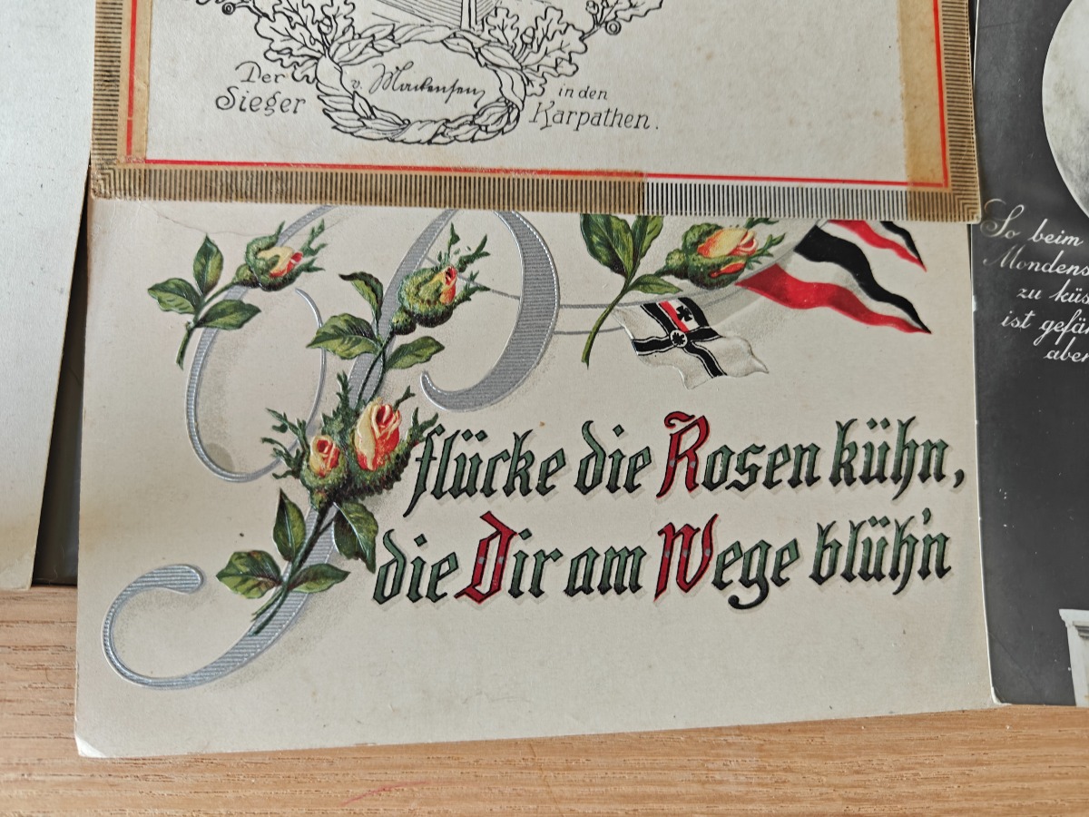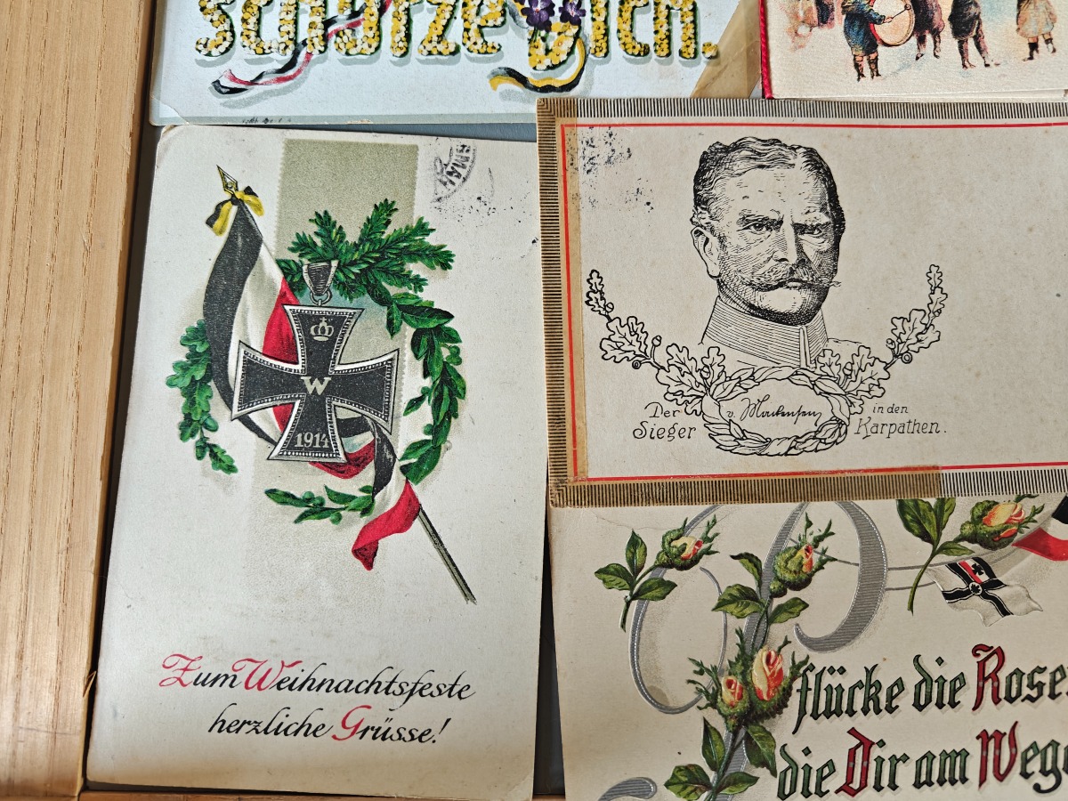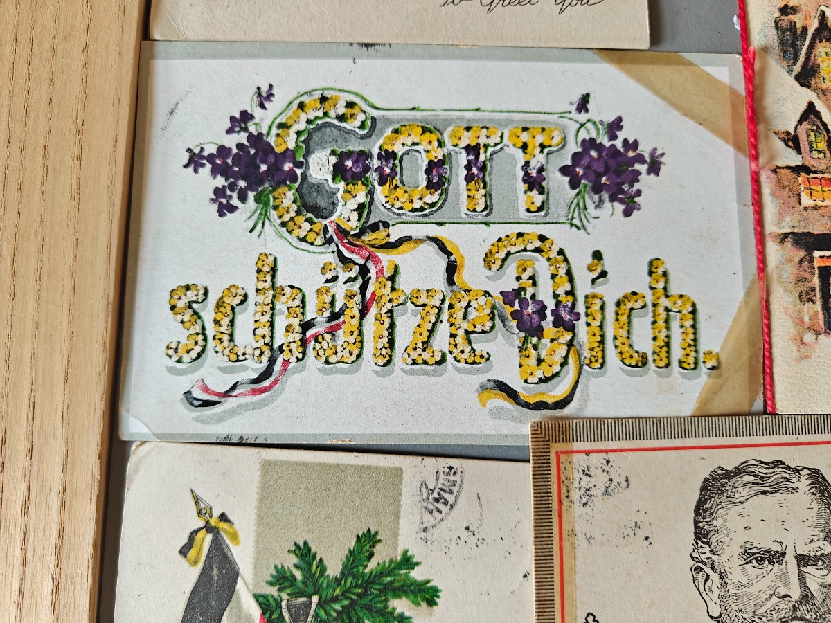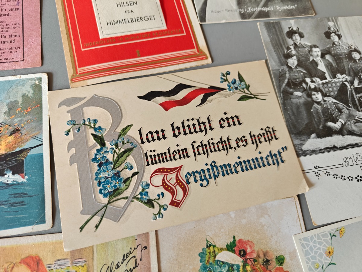 Ældre og nyere. Fotos af de ældre i det gamle lille format. Danmark, Tyskland og England. Mange har været sendt. Nogen tidligere opklæbet i album. Nyere kort ikke på foto