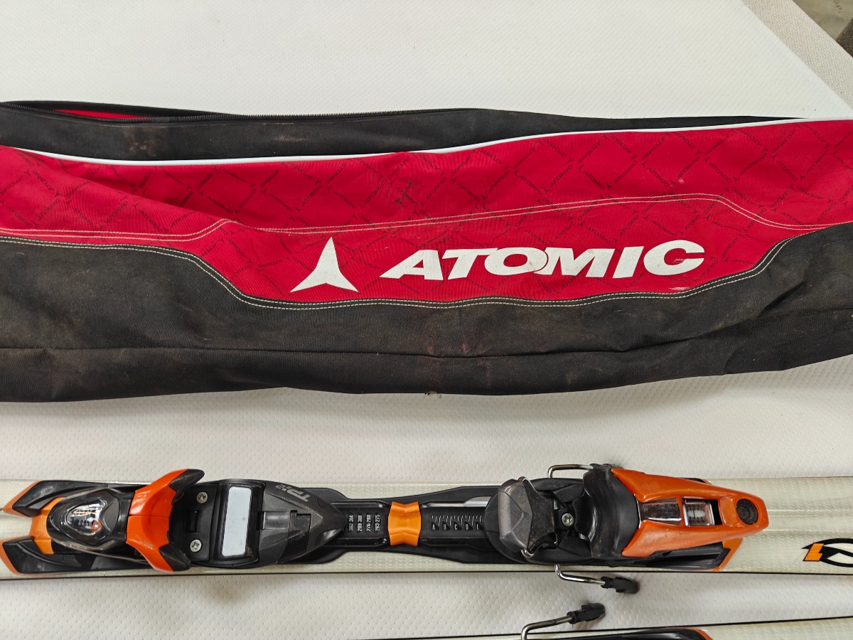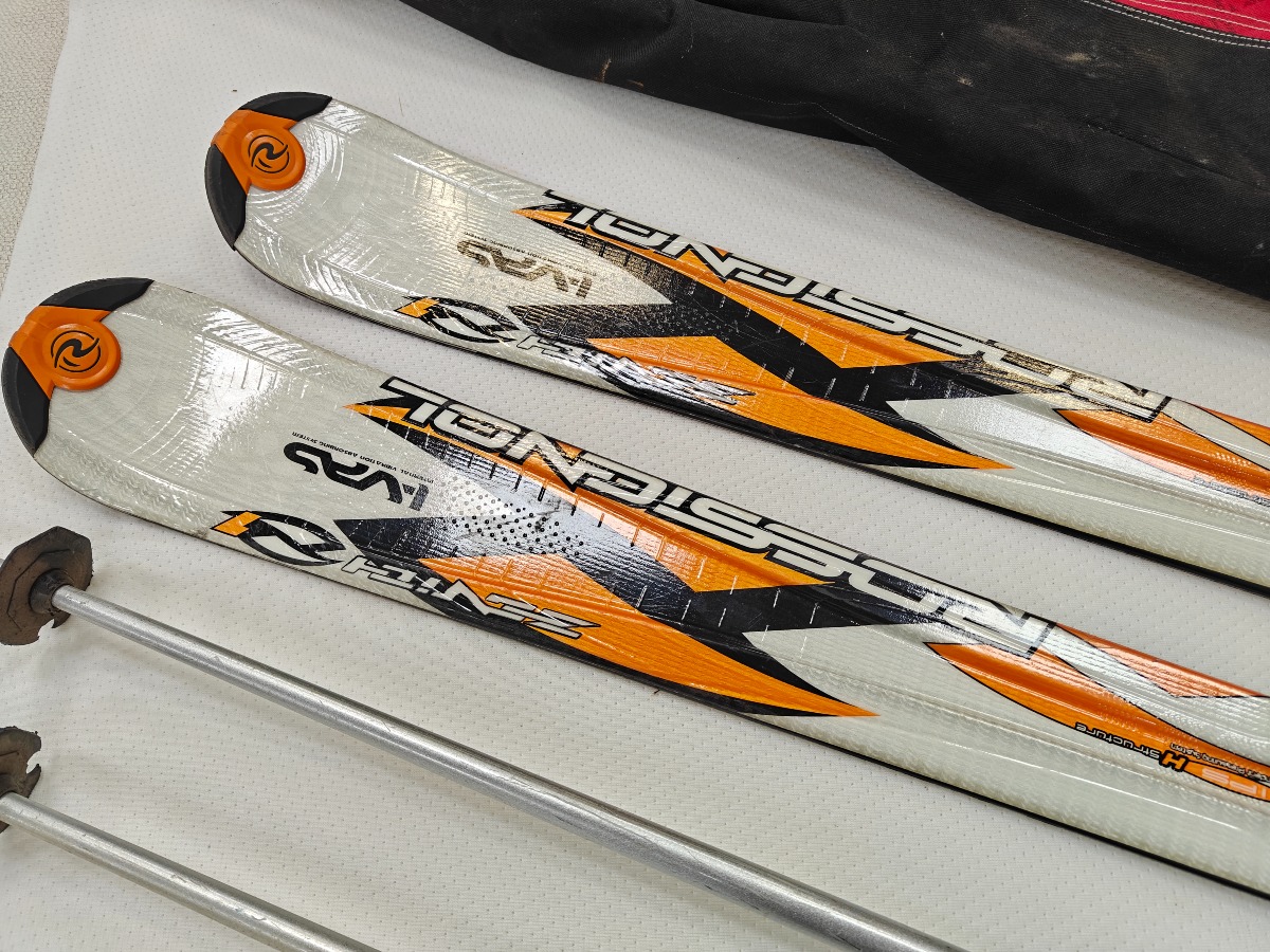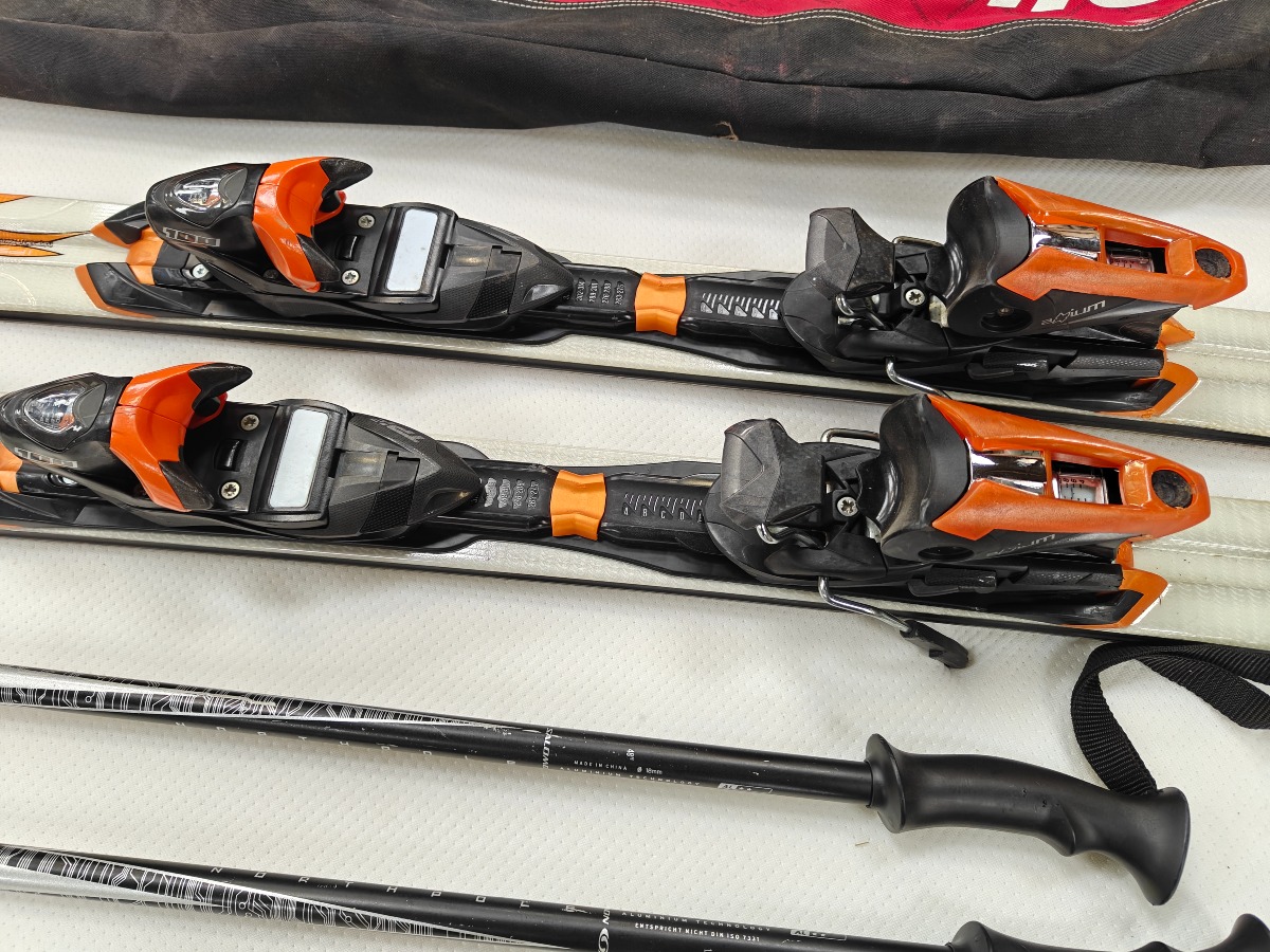 Rosignol alpinski og Salomon Northpole stave. Atomic transporttaske. Alle dele med brugsspor.