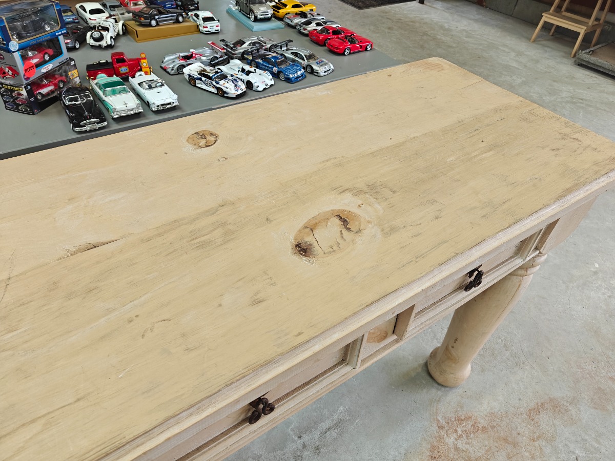 Stort konsolbord med laseret overflade. H. 91, B. 180, D. 58 cm. Enkelte tørrevner.