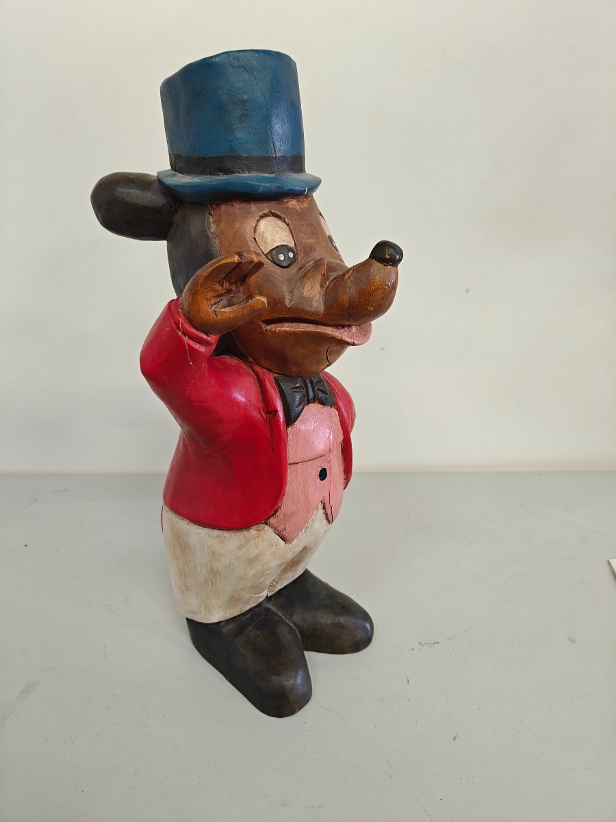 Træfigur "Mickey Mouse" af delvis bemalet træ. H. 52 cm.