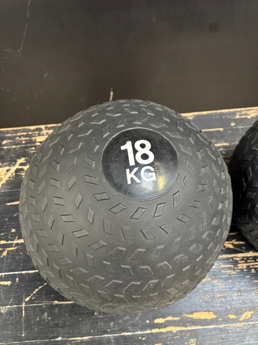 2 stk. 18kg Slam ball. Bemærk: Begge har fået nogle tryk ind. Umildbart burde det jævne sig ud med noget varme. Fra nedlukket webshop