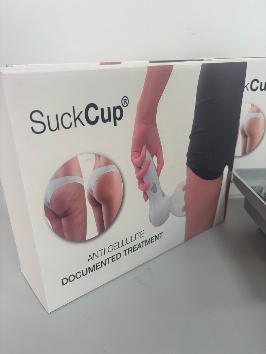 3 Massageapparat fra Celluless. Den er en effektiv og naturlig hjemmebehandling, der bekæmper cellulite og giver en tonet og glat krop. Med to forskellige sugekopper og en dybdegående massage, aktiverer SuckCup'en cellefornyelsen og forbedrer blodcirkulationen, hvilket resulterer i en fastere og mere jævn hud. 10 stk. Ubrugt og i original emballage.