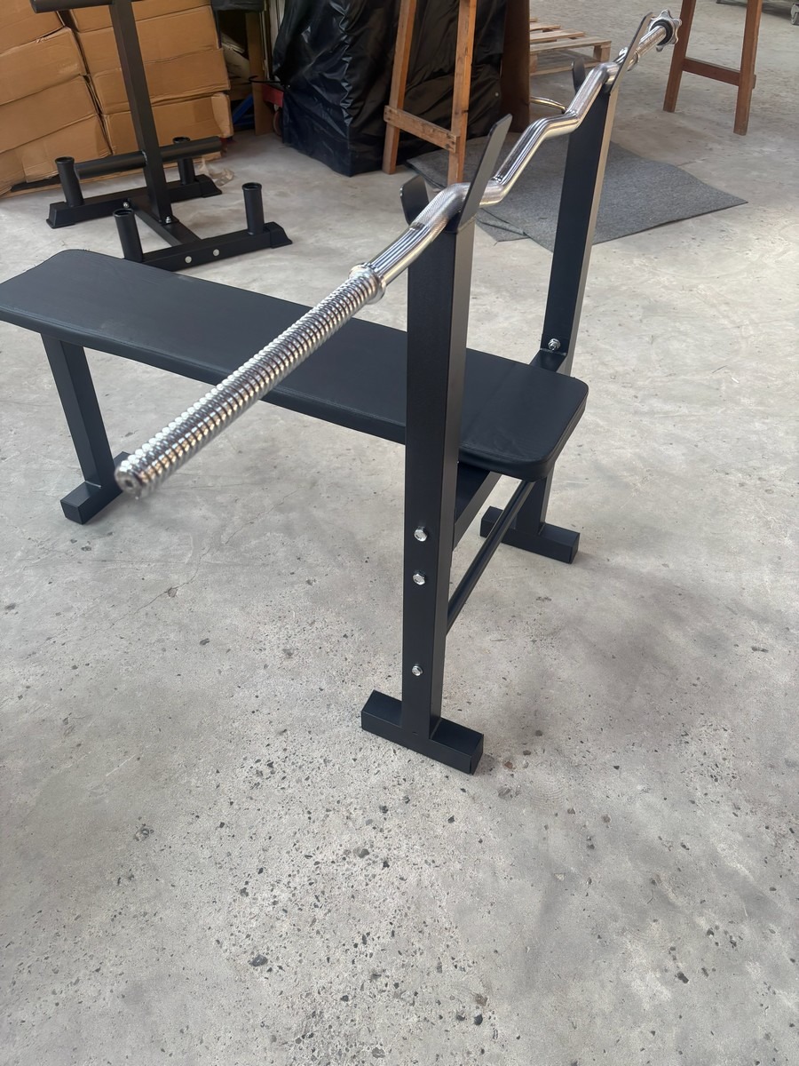 Bænkpres / Træningsbænk med stativ (Ubrugt og usamlet - stangen medfølger ikke)