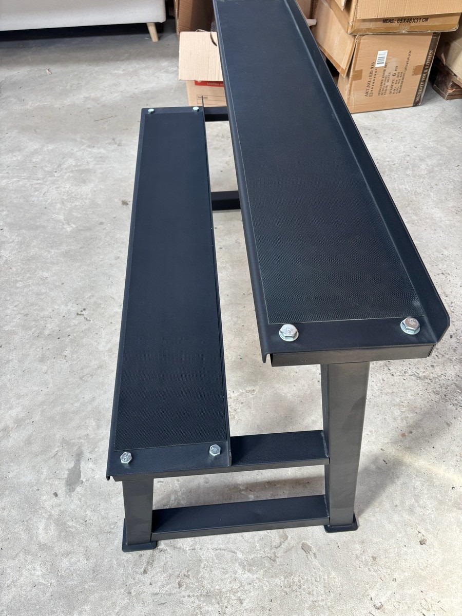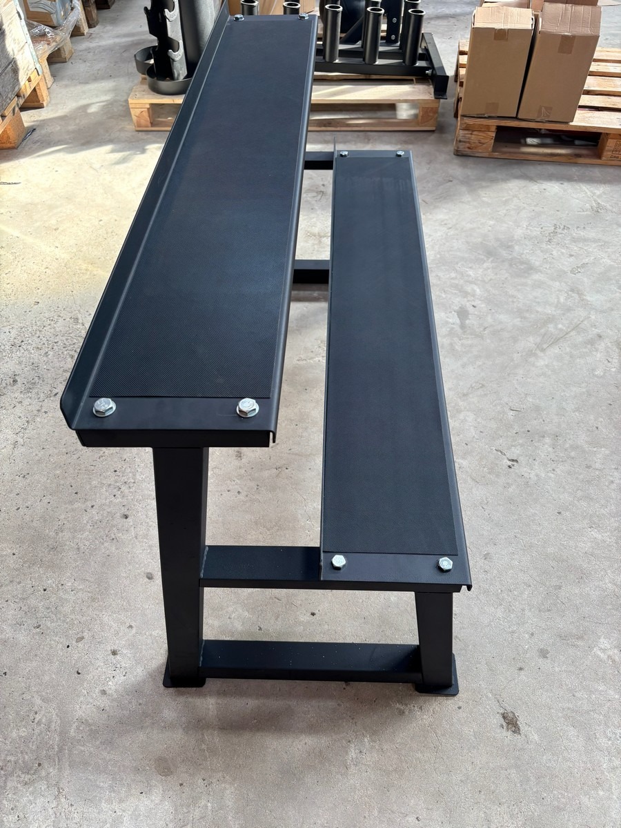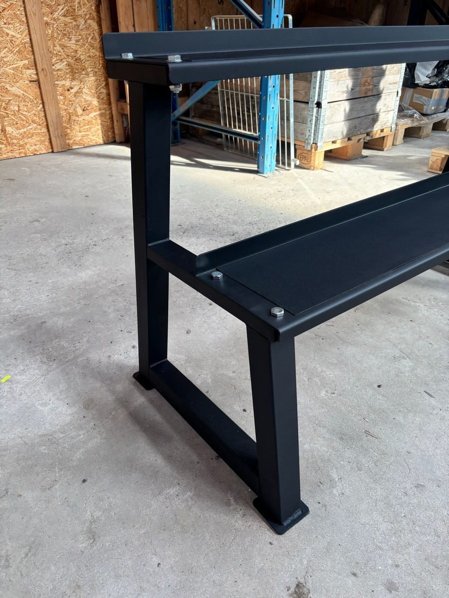 Kettlebell rack med to hyder til kettlebells (Ubrugt og usamlet) Billedet taget af en demo mobil. Måler: ca. 116 cm.. Fra nedlukket webshop
