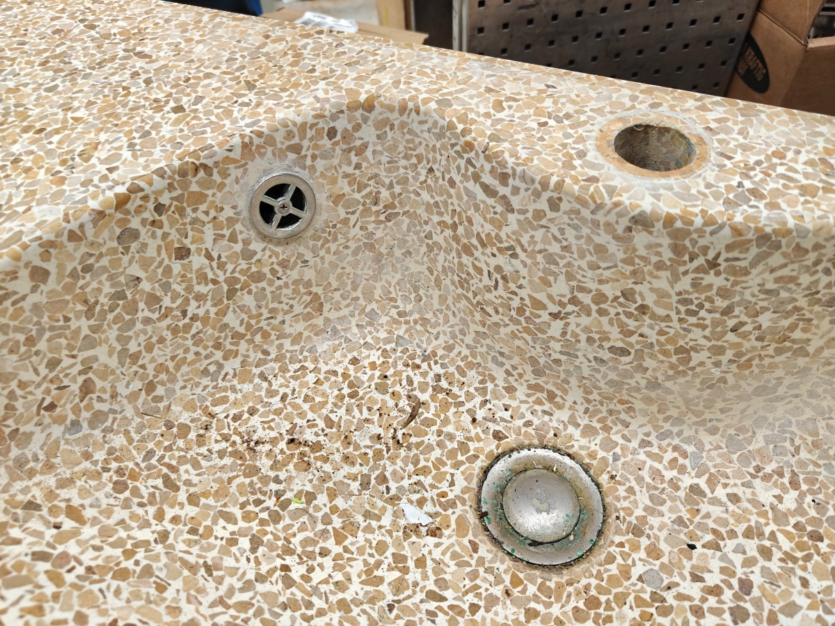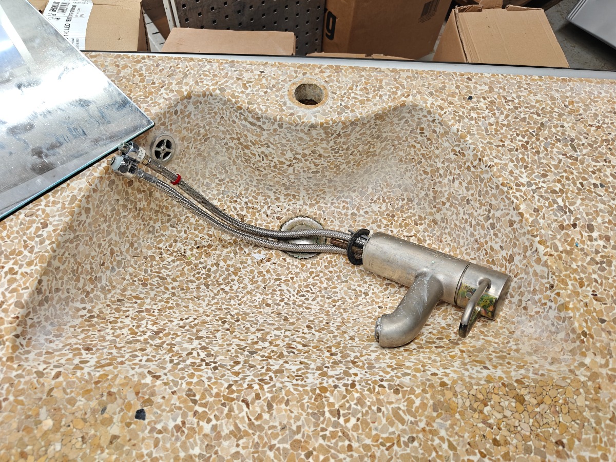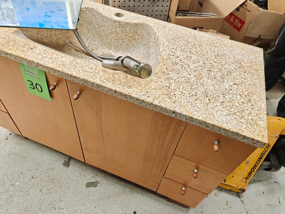 1 stk vaskeelement med granit bordplade og blandingsbatteri og spejl 46 x 30 cm