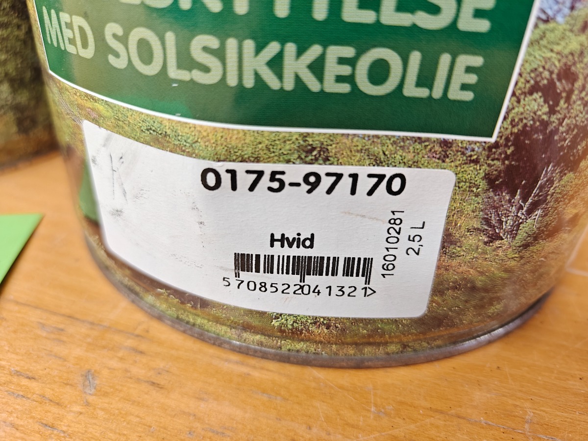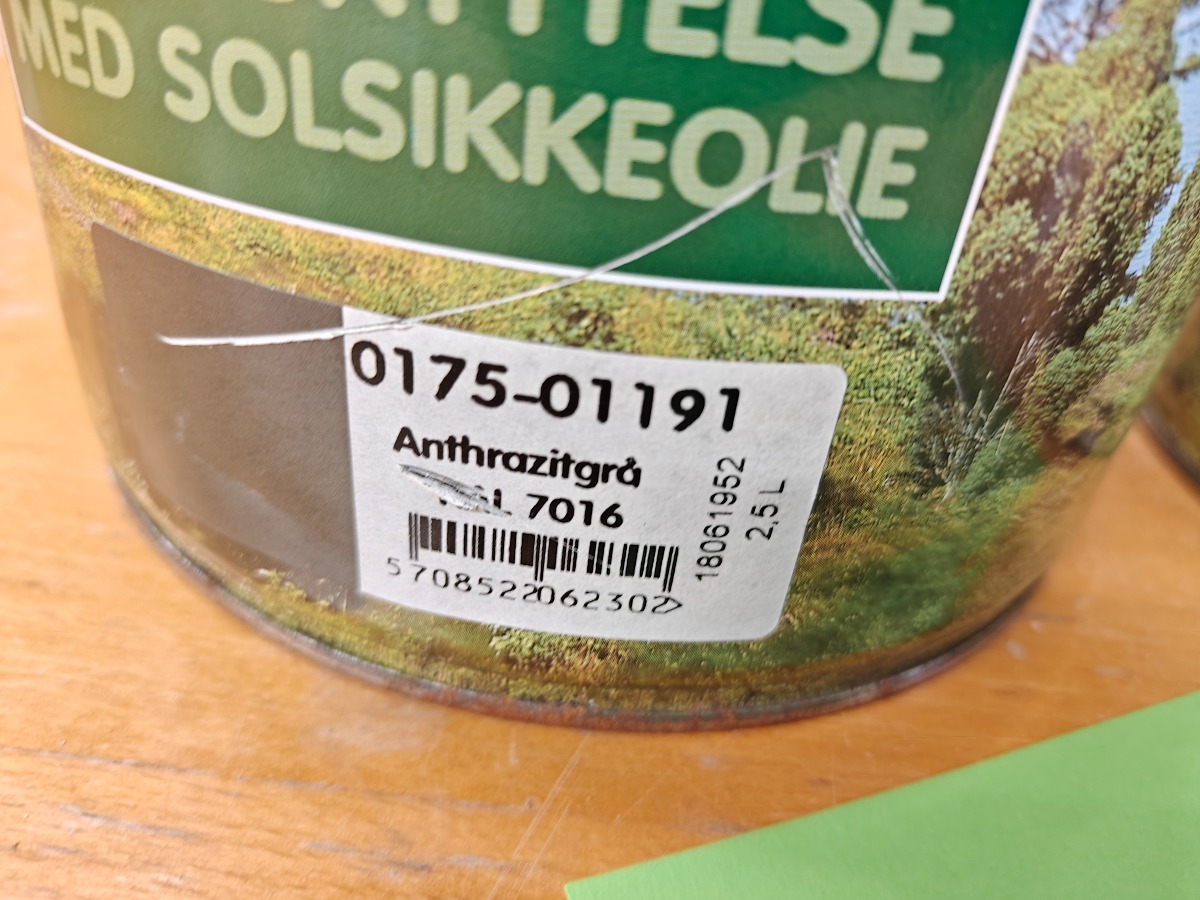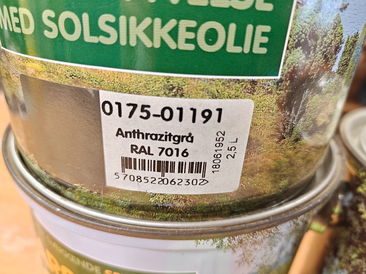 2 spande træbeskyttelse antracit grå  a 2,5 L, 1 spande træbeskyttelse hvid a 2,5 L uåbnet
