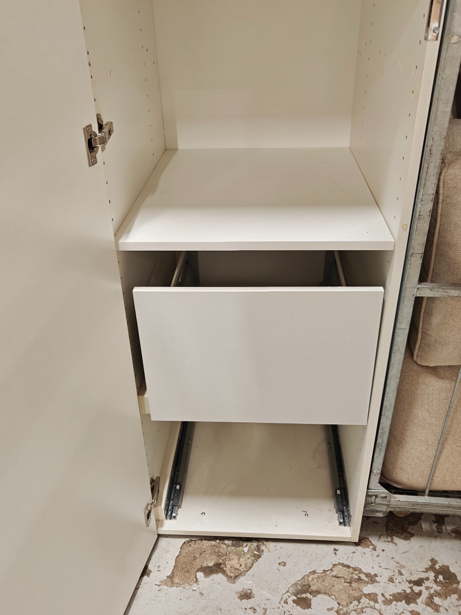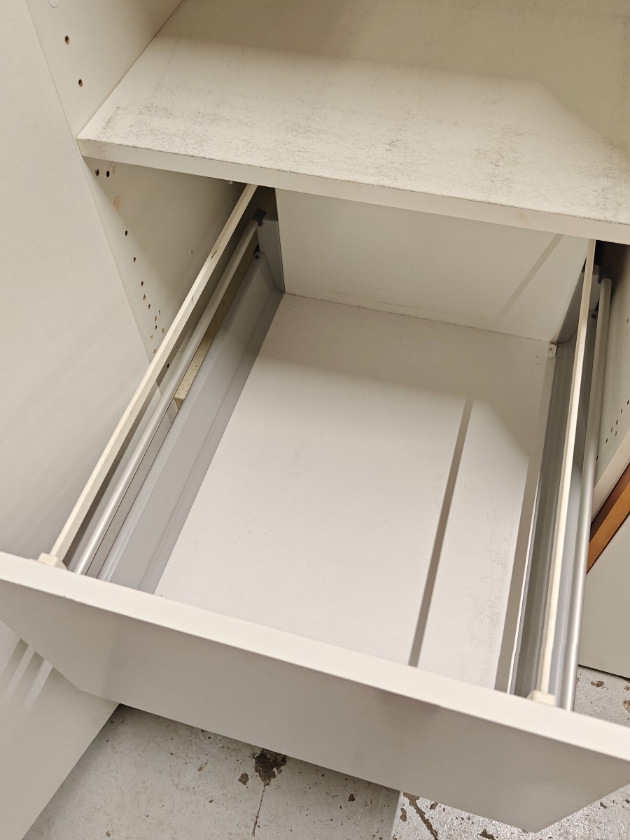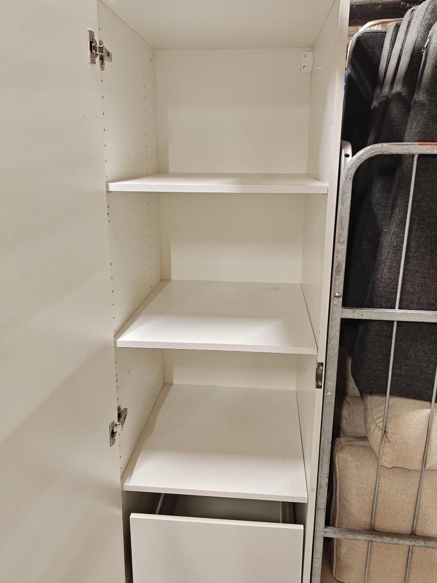 3 stk garderobeskabe hvide h 190 x b 50 x d 60 cm med hyldr og skuffer incl. sokkel ok stand