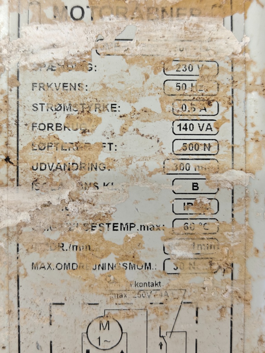 Accelerator/motoråbner udvandring 300 mm, IP 54 brugt