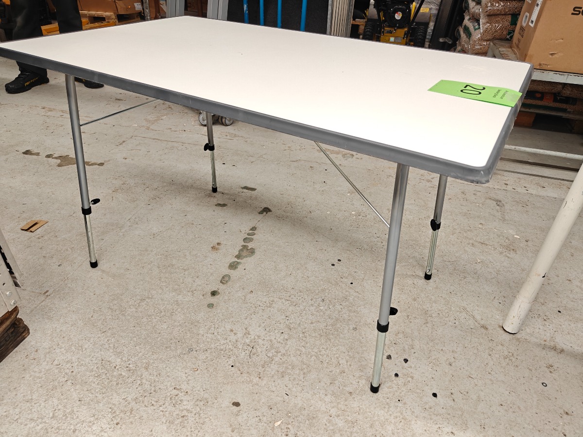 Campingbord kraftig model 70 x 115 cm med justerbar højde fra ca 50 cm pæn stand