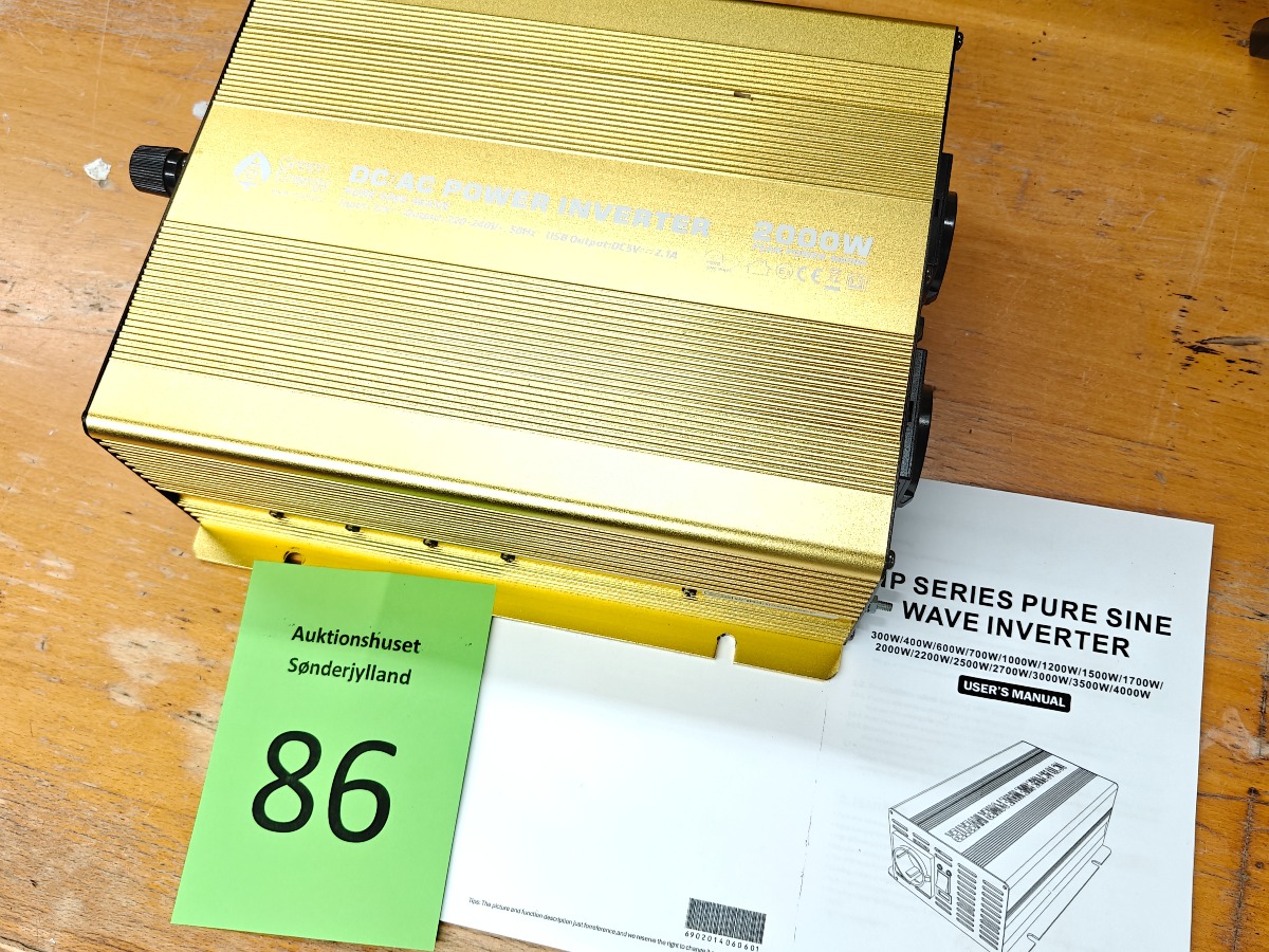Inverter Green energy 2000 W  in 24 V out 220-240 V 2,1 A vi garanterer ikke for funktionaliteten