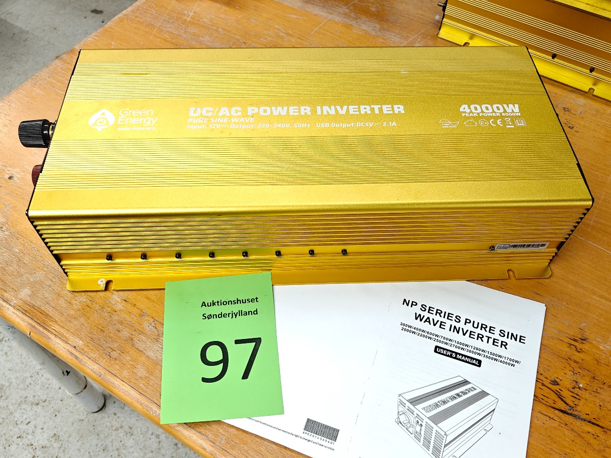 Inverter Green energy 4000 W  in 12 V out 220-240 V 2,1 A vi garanterer ikke for funktionaliteten