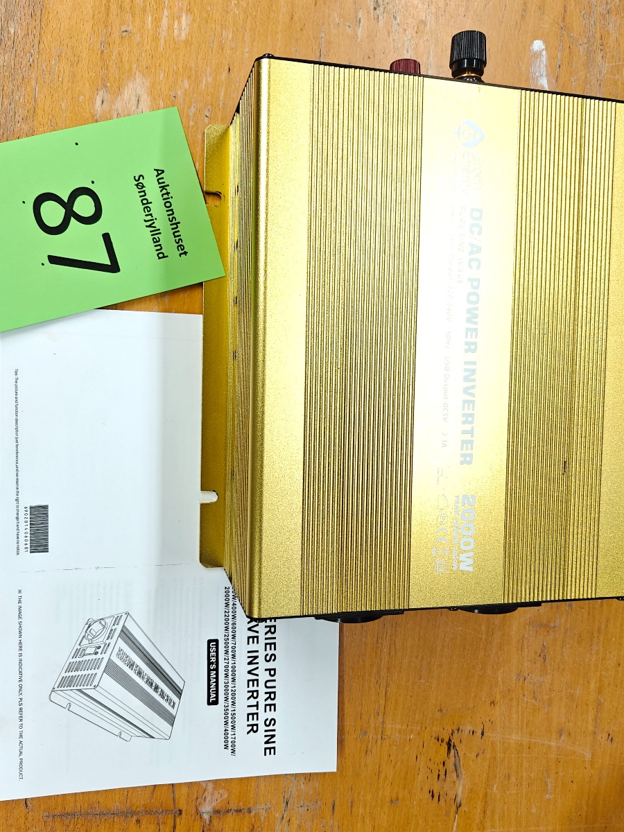 Inverter Green energy 2000 W  in 24 V out 220-240 V 2,1 A vi garanterer ikke for funktionaliteten