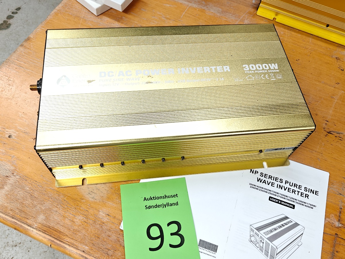 Inverter Green energy 3000 W  in 12 V out 220-240 V 2,1 A vi garanterer ikke for funktionaliteten