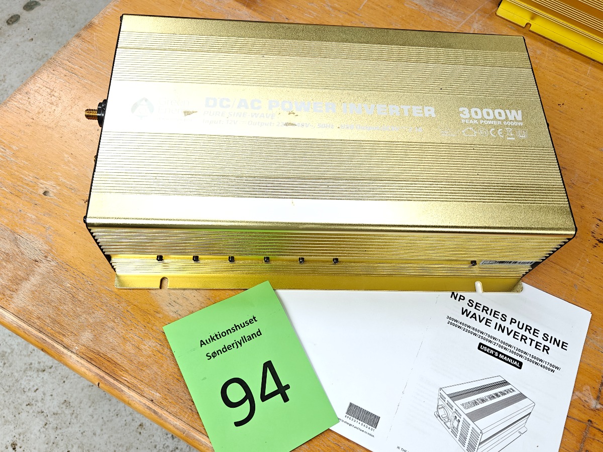 Inverter Green energy 3000 W  in 12 V out 220-240 V 2,1 A vi garanterer ikke for funktionaliteten