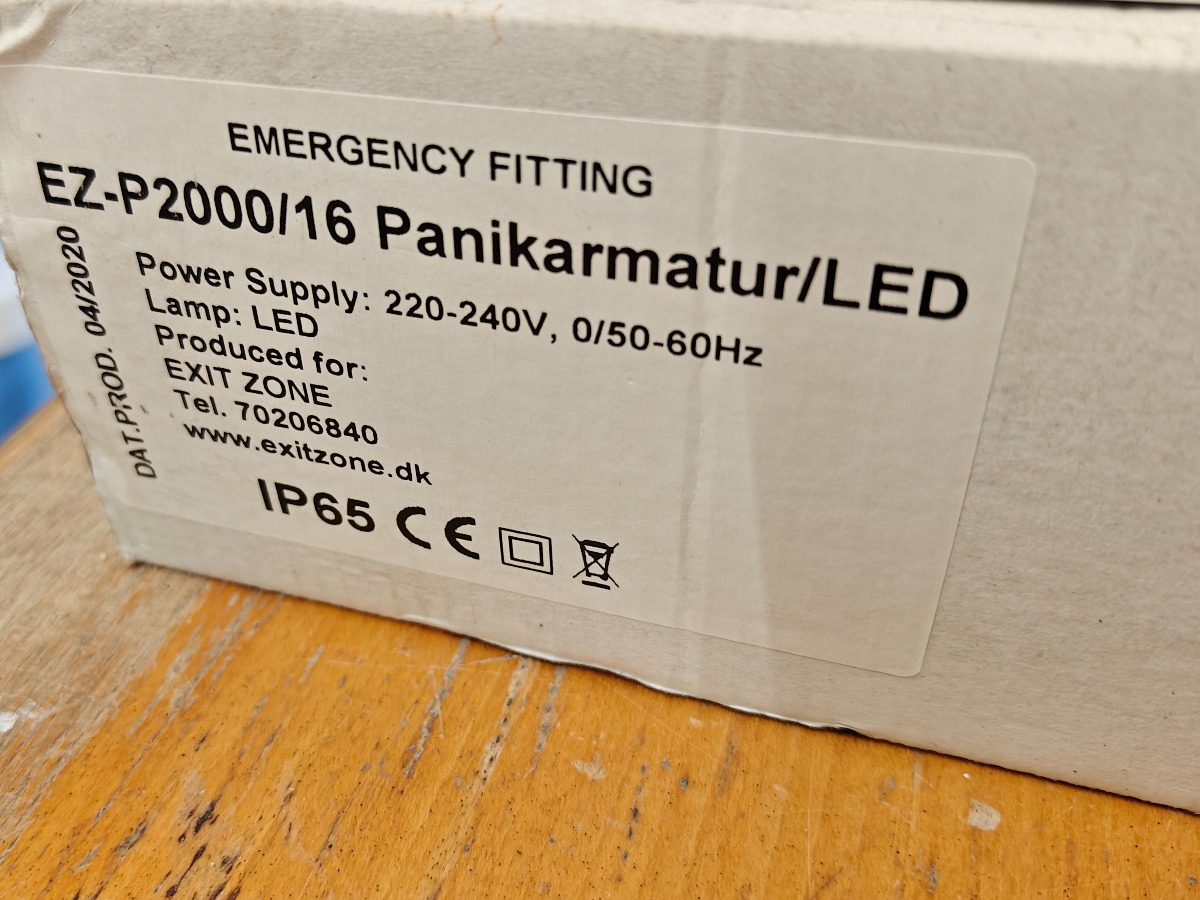Nød udgangs lampe + panik lampe som tænder hvis strømen forsvinder