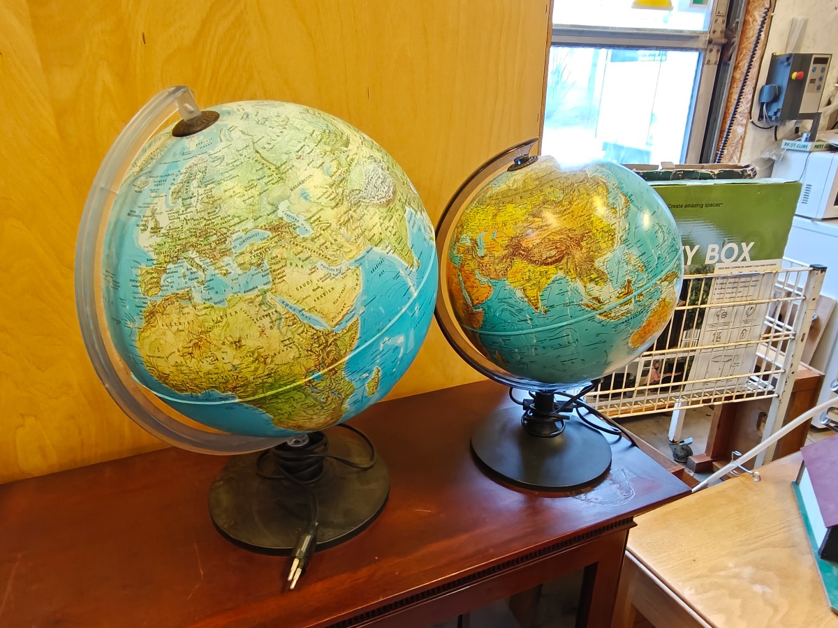 2 globus med lys. Ene fra Scanglobe. Vi garanterer ikke for funktionaliteten.