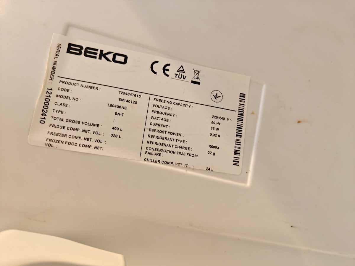 BEKO køleskab model L60400NE. 184 x 60 x 60 cm. Mindre brugsspor og ene fod defekt. Vi garanterer ikke for funktionaliteten.