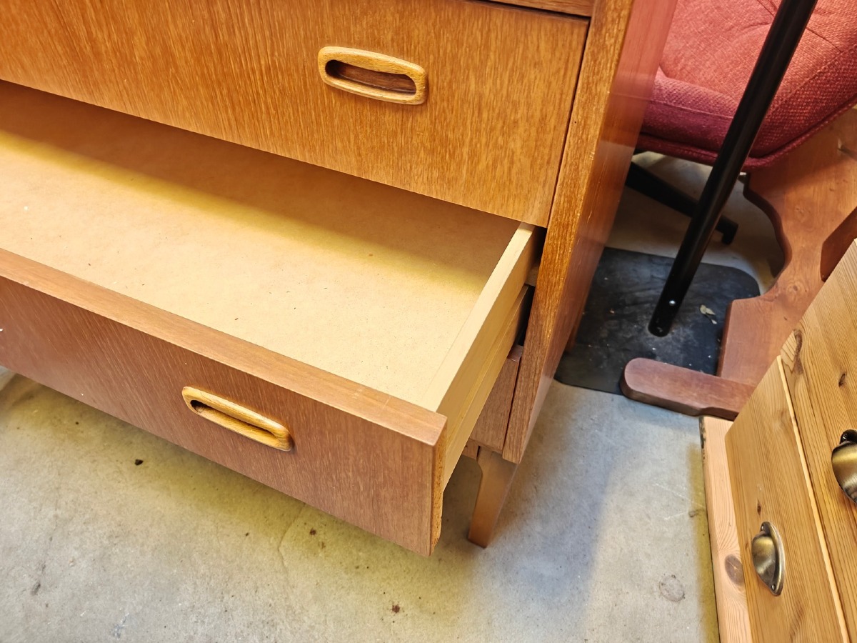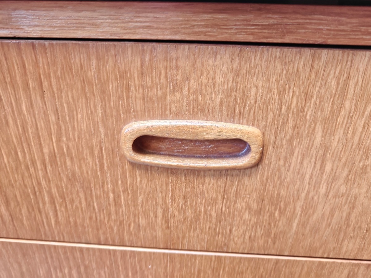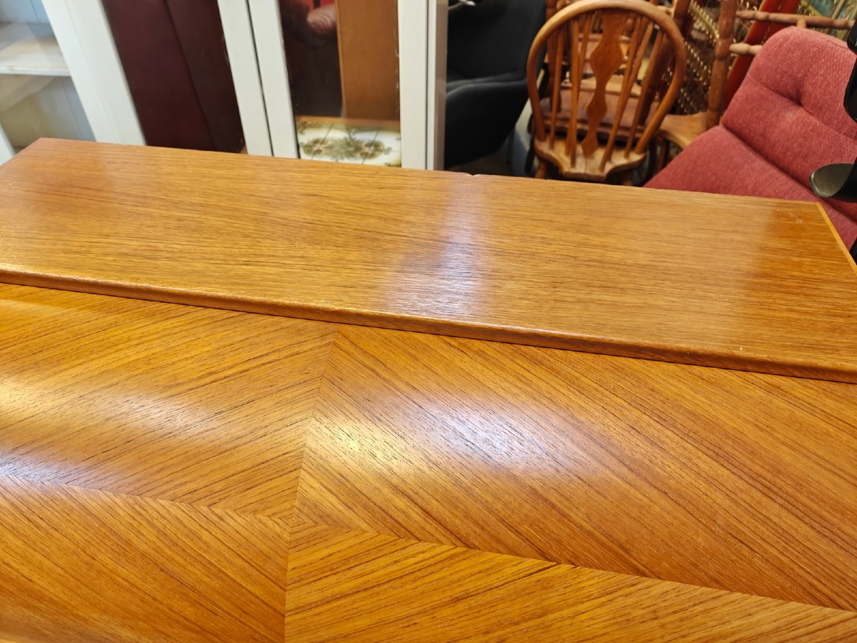 Chatol af teak med cylinderklap, fineret. 3 skuffer i front. 100 x 85 x 45 cm. Finerskader kan forekomme.