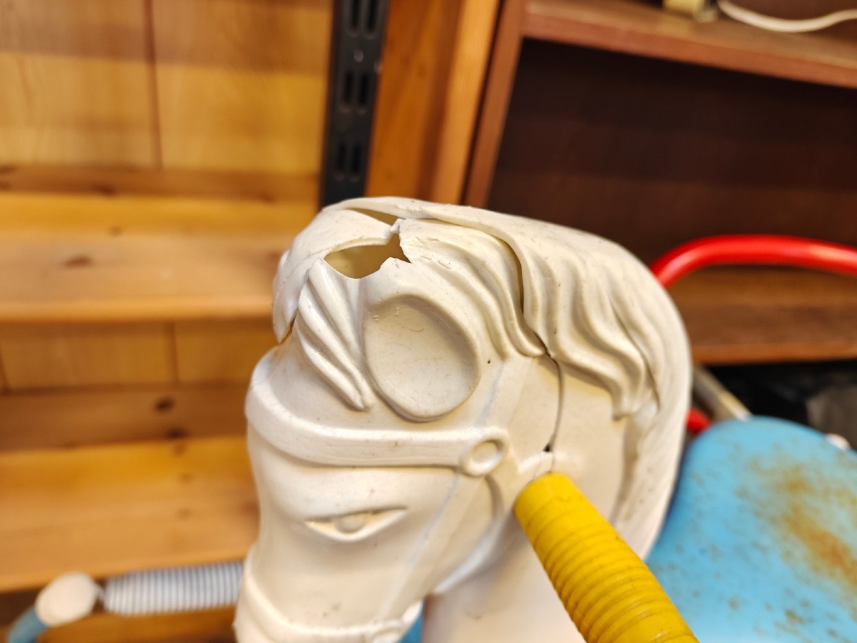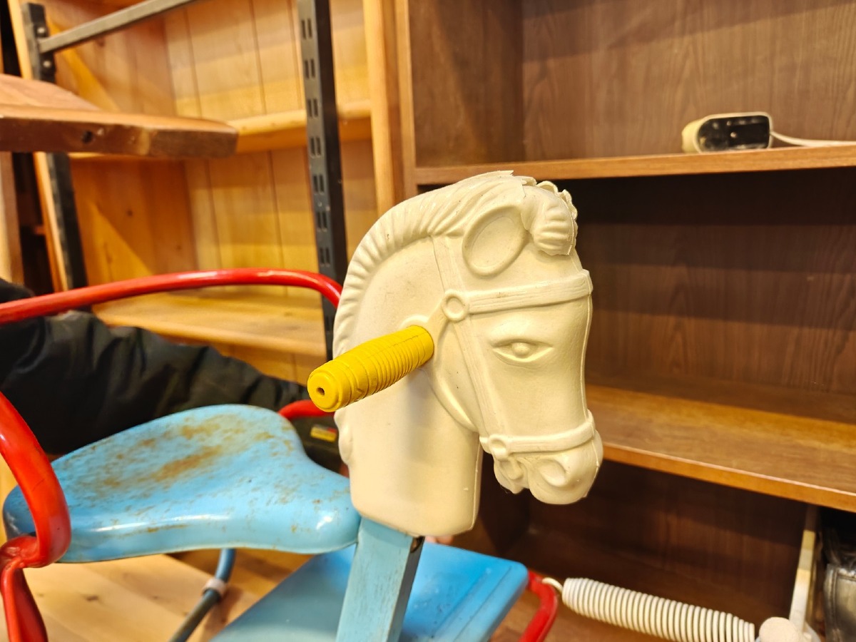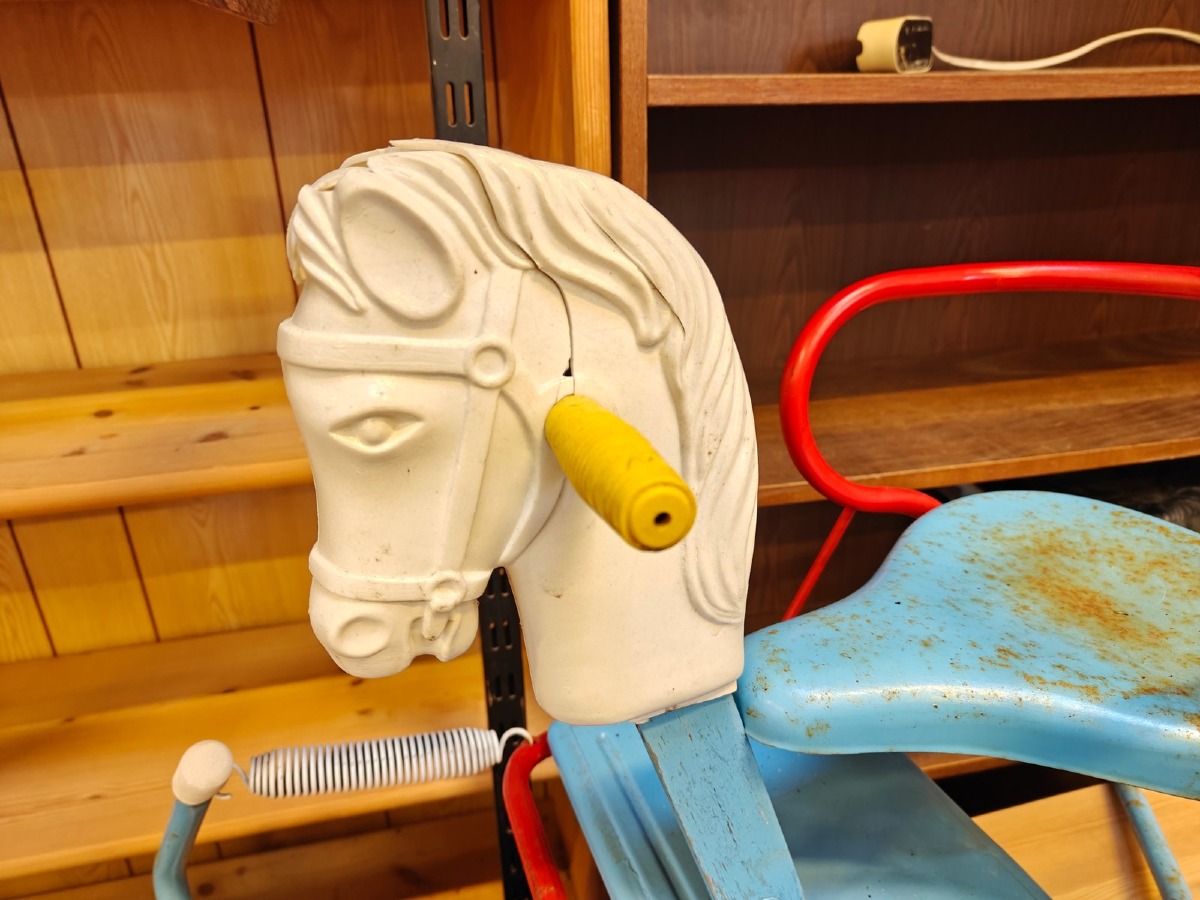 D. Sebel &Co. LTD. MOBO gyngehest af bemalet jern. Hestehoved og endeknopper af plast. Hoved har lidt skader.