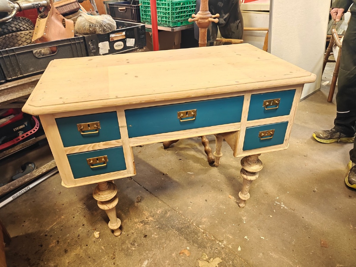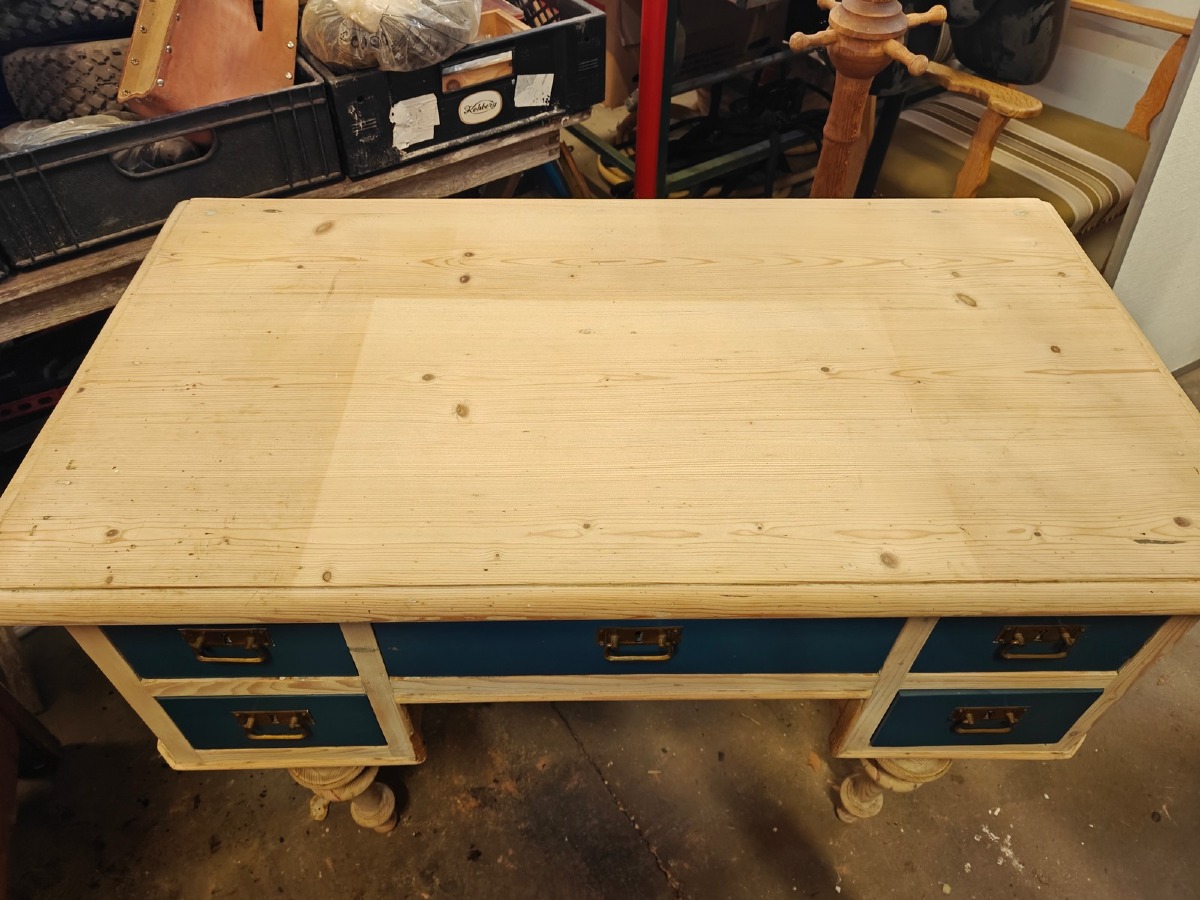 "HC Andersen" skrivebord af fyr. 5 skuffer i front med bemalet overflade.  75 c 100 x 55 cm. Benene er lidt løse.