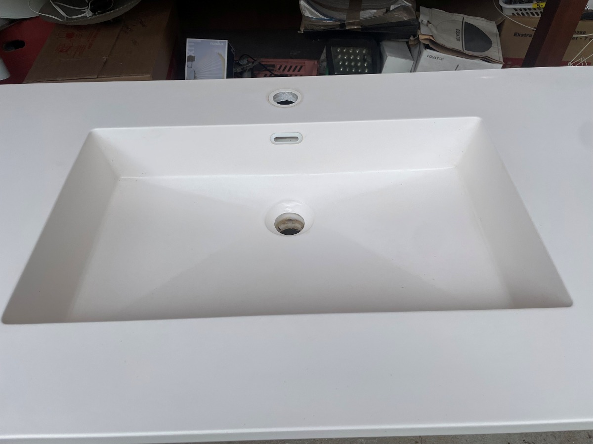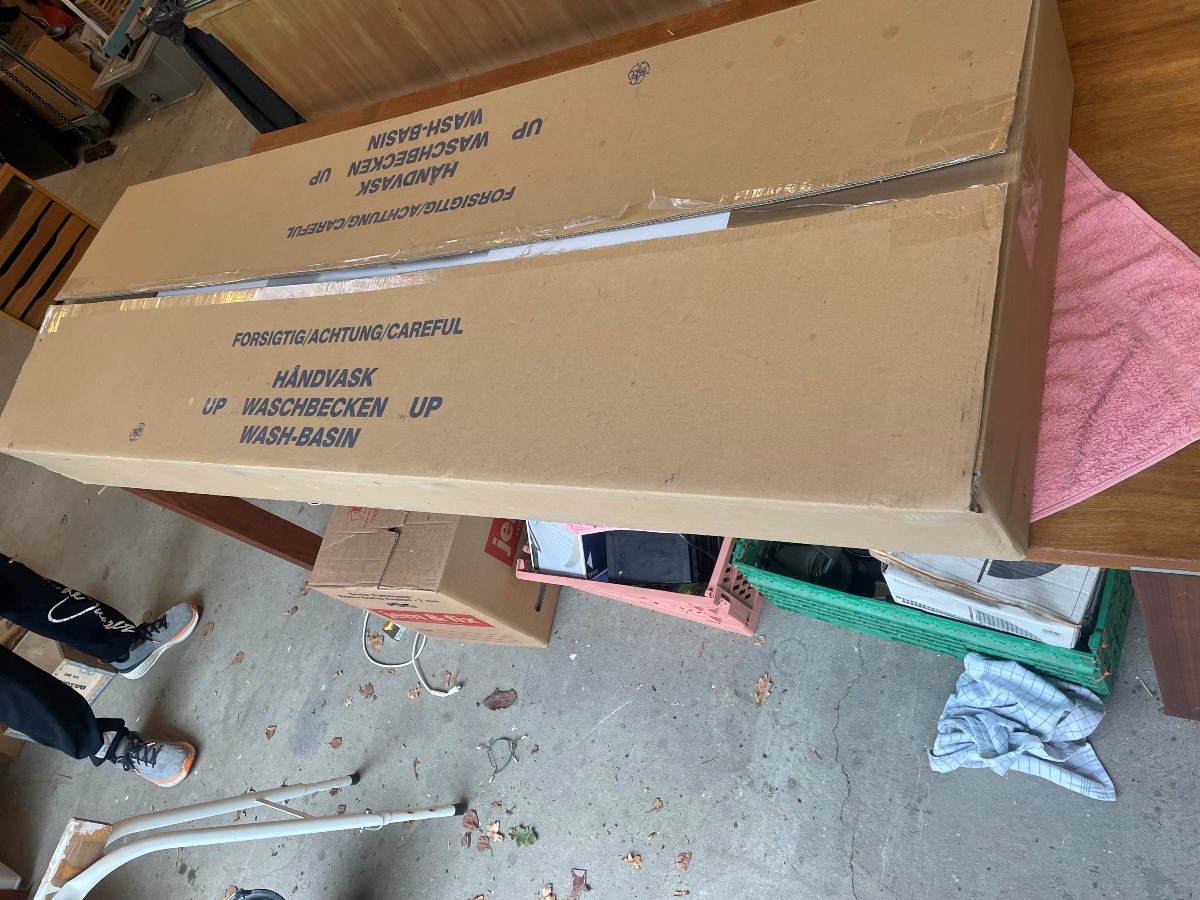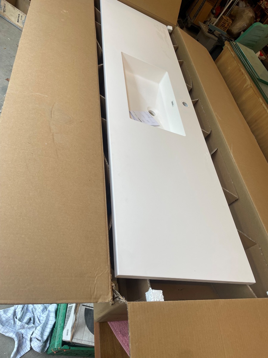 Mabre Design bordplade med integreret vask. 182 x 51 cm. Pladen er ubrugt og ligger i original embalage.