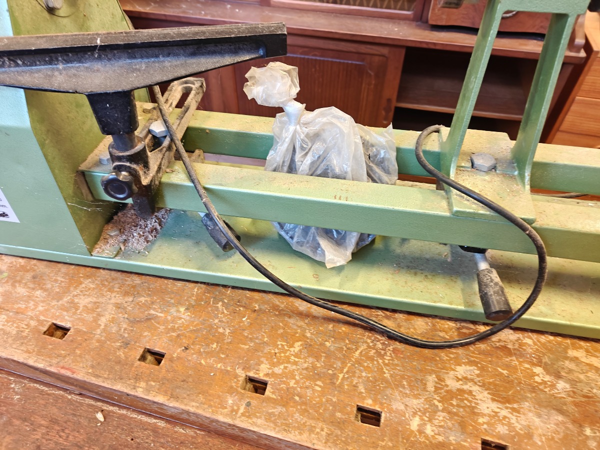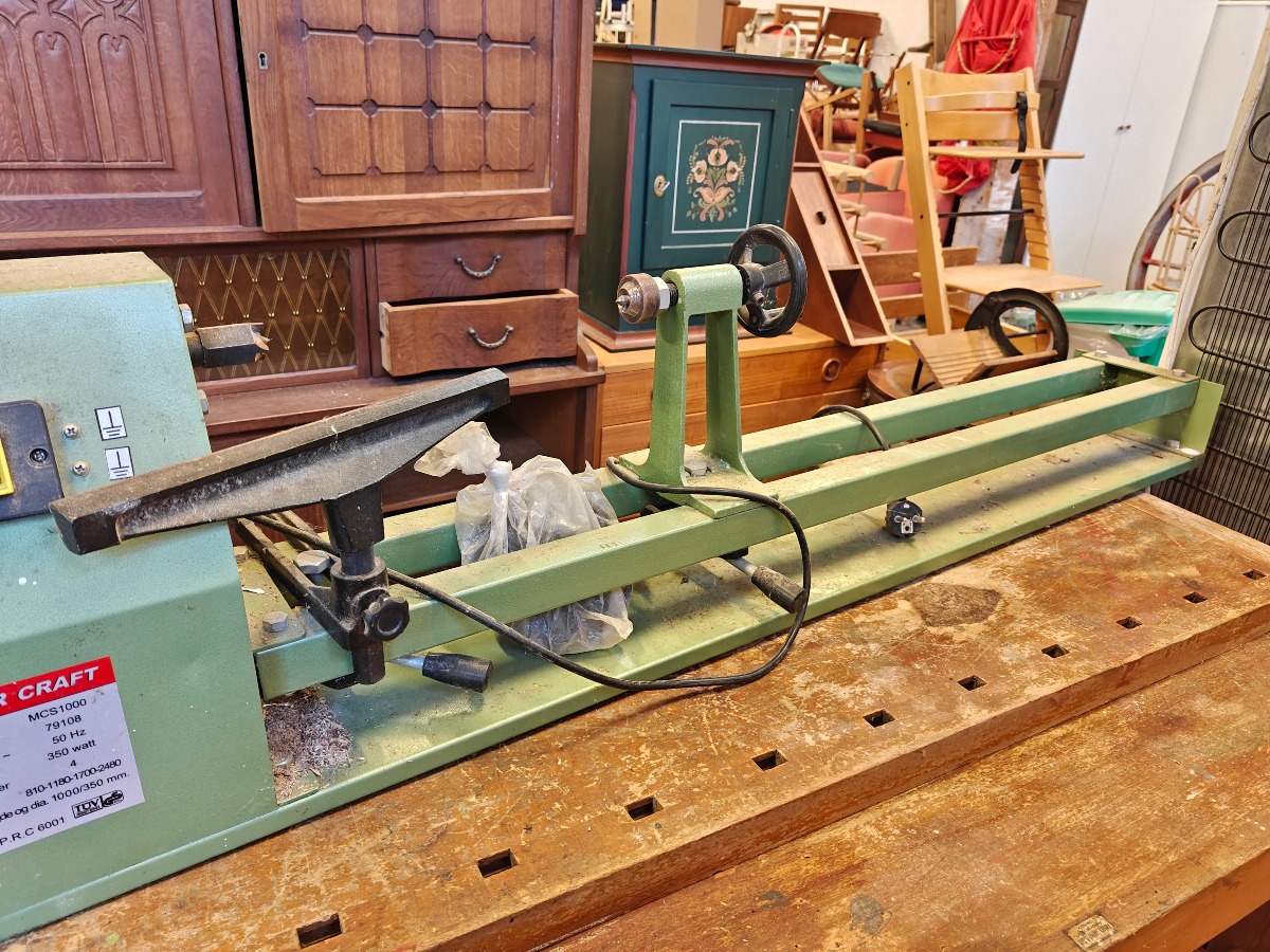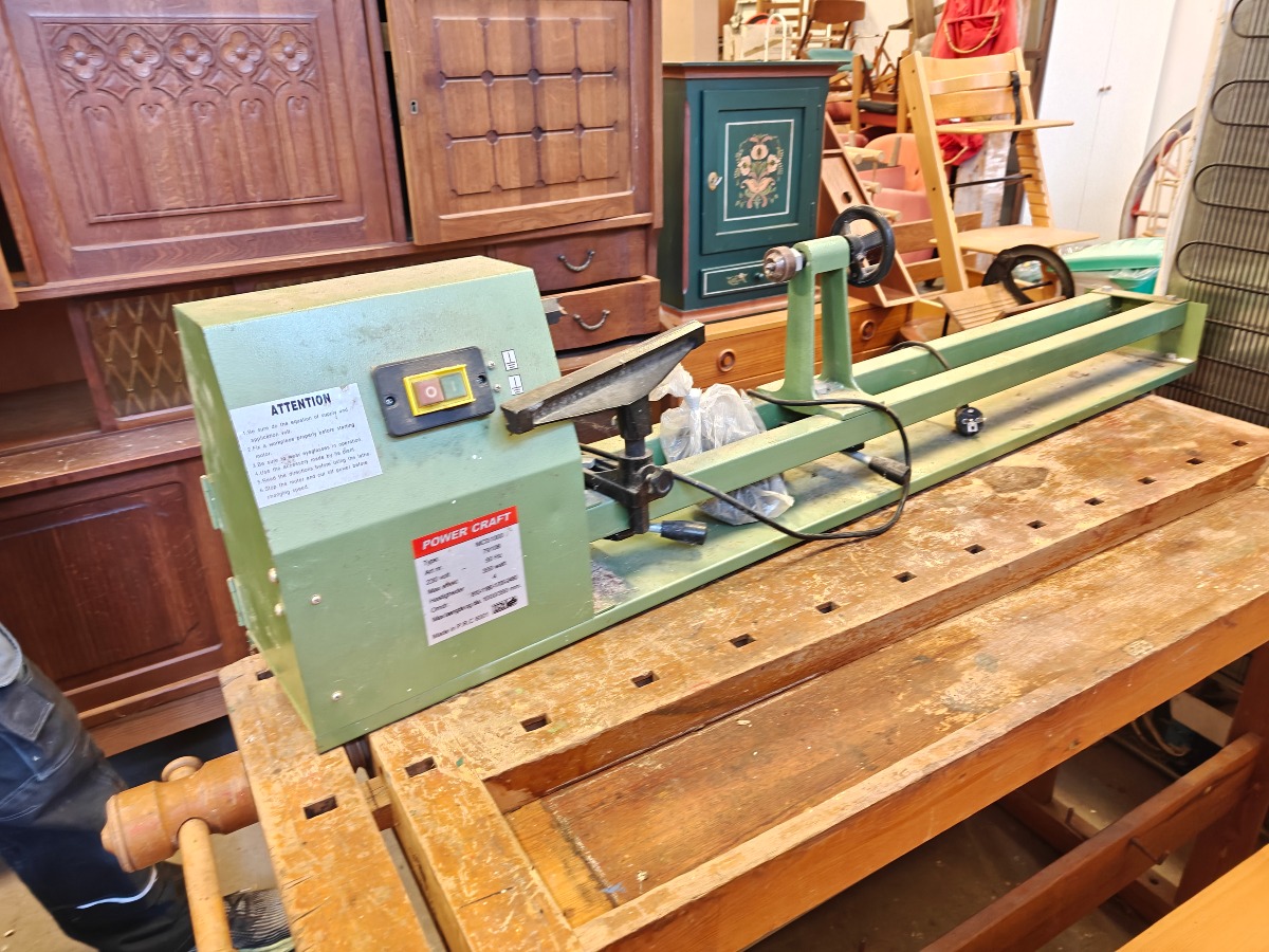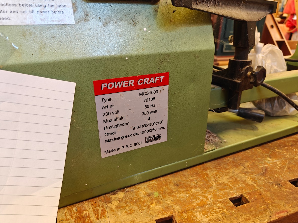 Power Craft MCS1000 trædrejebænk. 230V. og max effekt 350W. Vi garanterer ikke for funktionaliteten.
