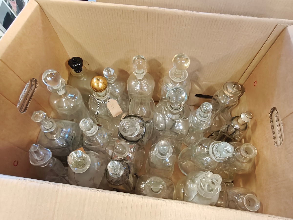Stor samling klukflasker. Mange forskellige. Nyere og ældre.