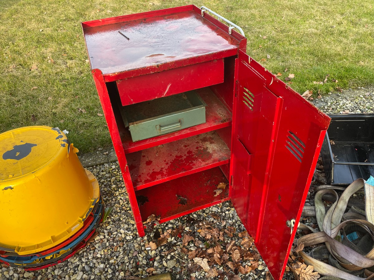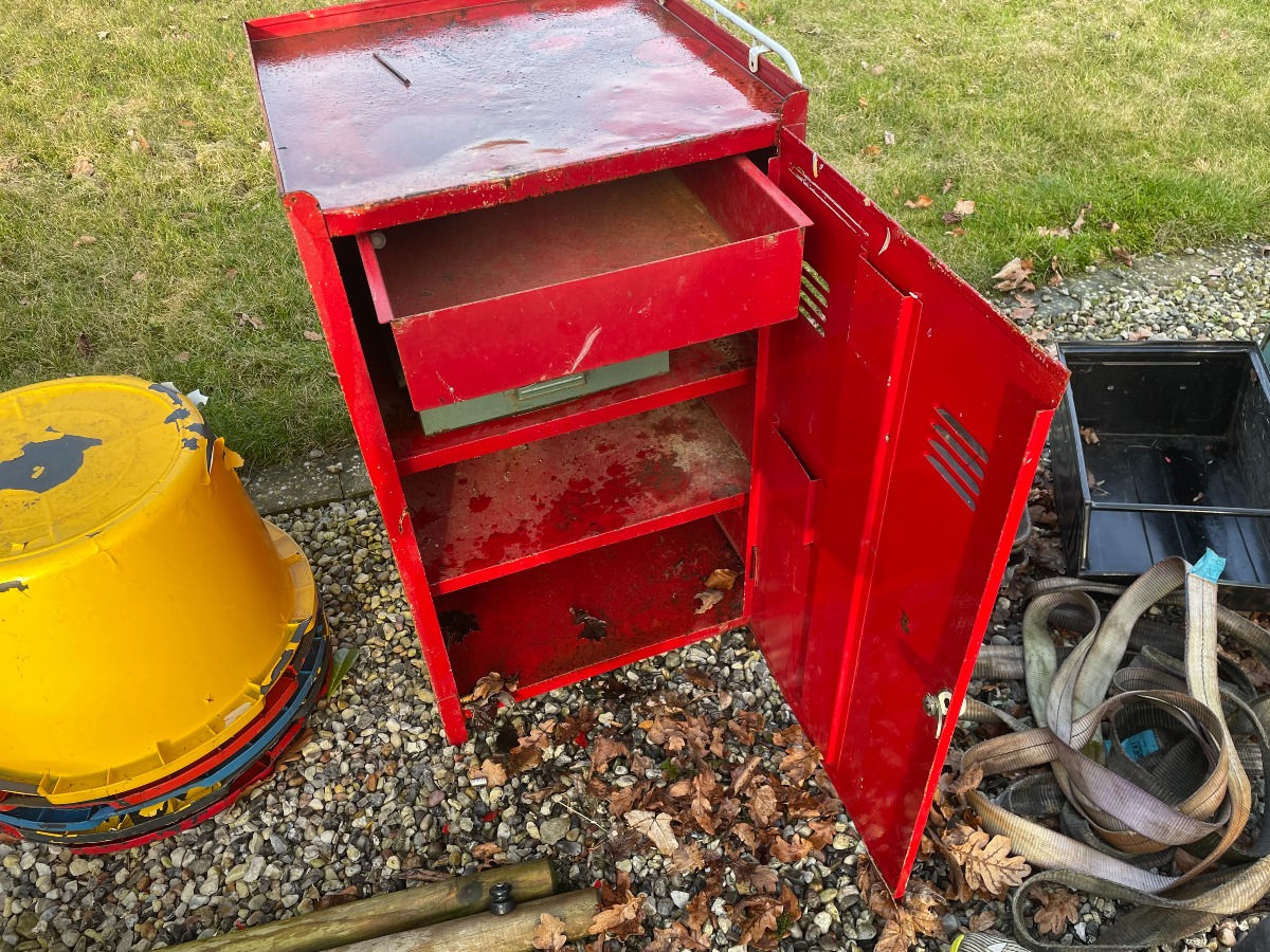 1 rødt værkstedsskab B: 50cm x D: 50cm x H: 86cm