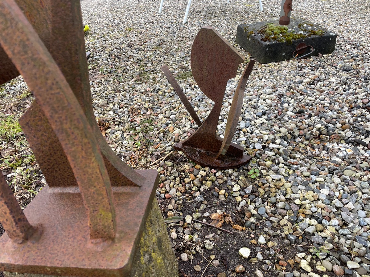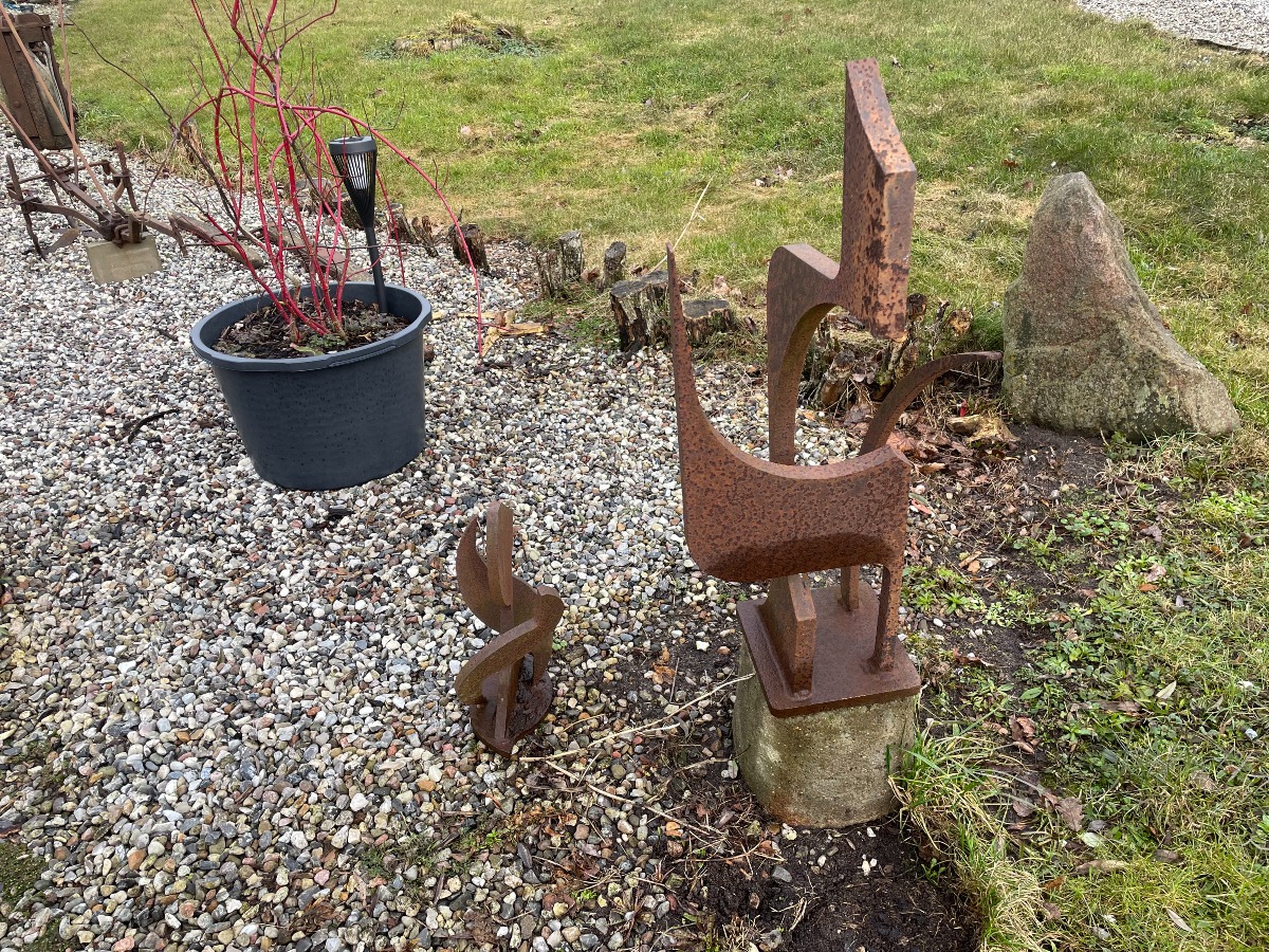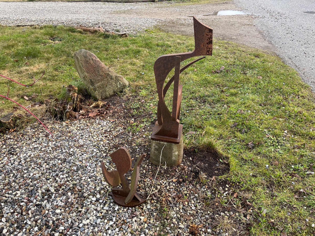 2 Jernskulpturer af ukendt kunstner.