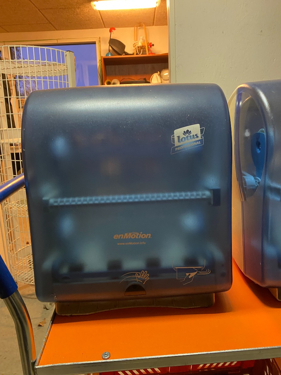 2 Lotus professionel emotion auto papirhåndklæde-dispensere. Den ene mangler batteri indsats.