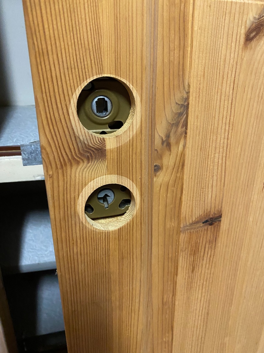 Den ene dør er behandlet med lys lud på den ene side. Ellers OK stand. Dog med lette brugsspor.