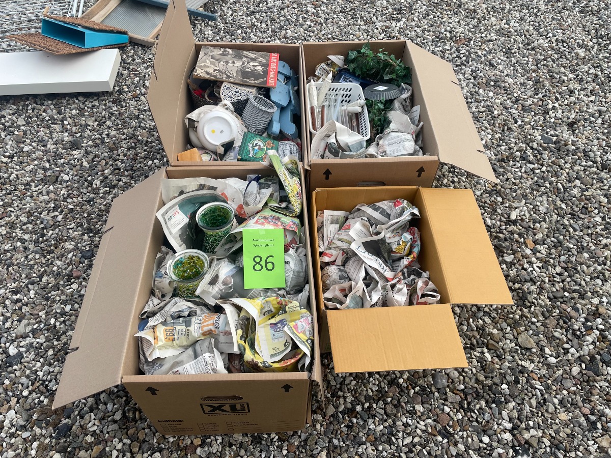 3 flyttekasser + 1 lille kasse med diverse indbo / “Lopper”