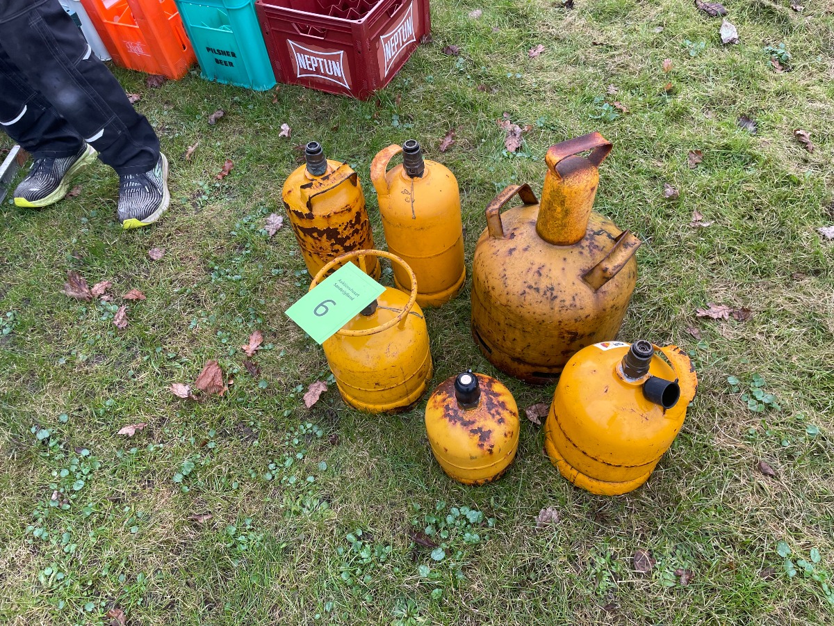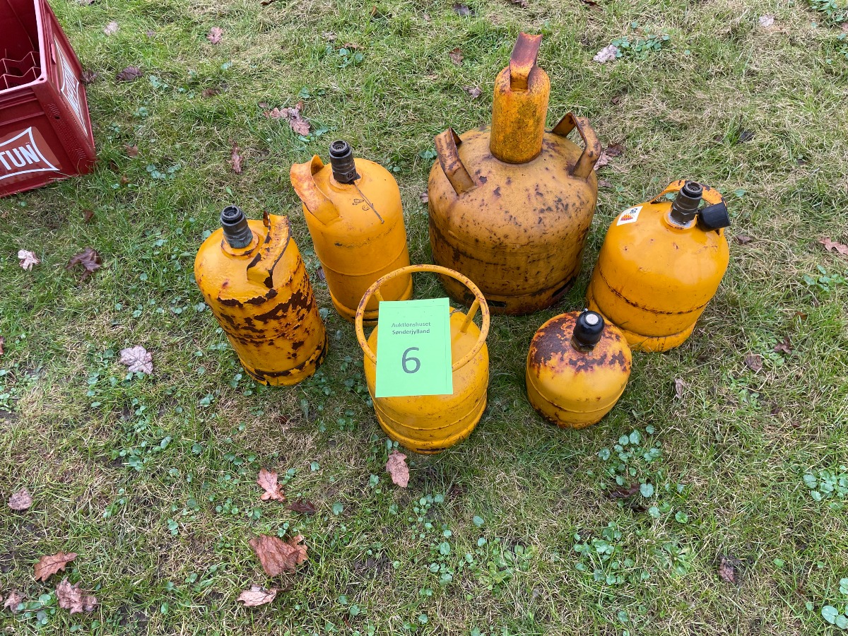 6 gasflasker. Den største er på 5kg.