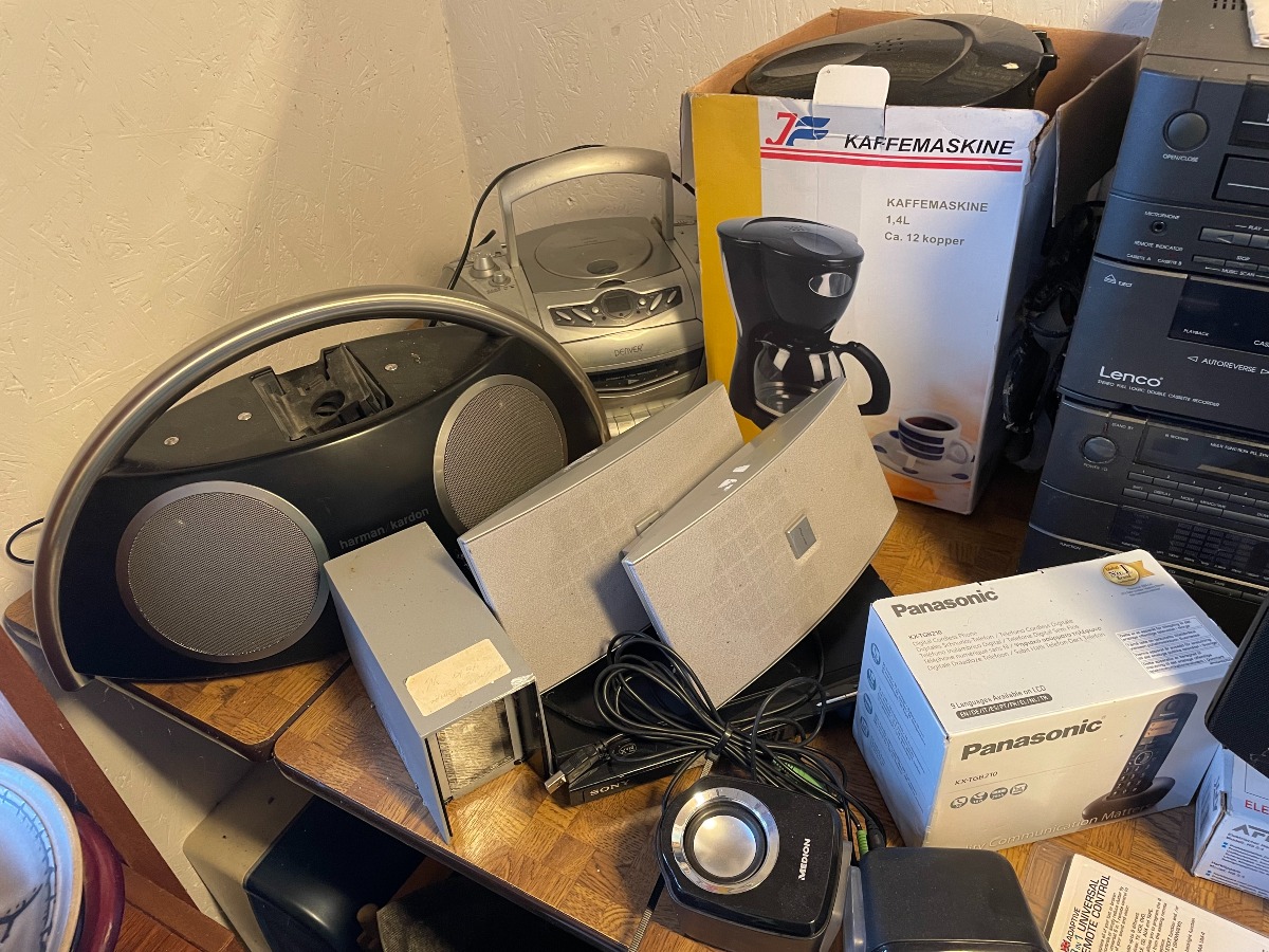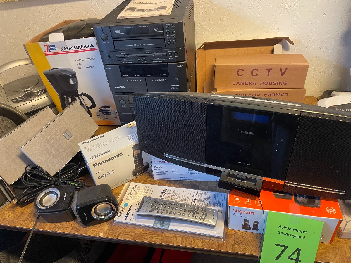 Blender, strygejern, overvågning, radio, minianlæg, kaffemaskine, højtalere, telefoner, skægtrimmere mm.