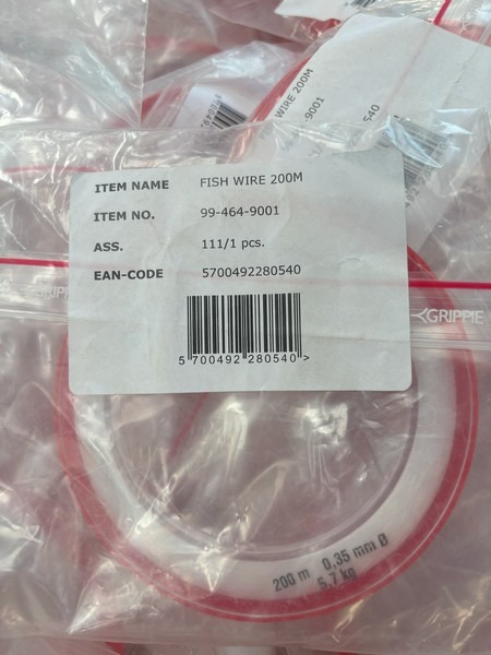 50 x gennemsigtig fiskeline á 200M. Måler 0,35mm i diameter. Max 5,7kg. Ubrugt