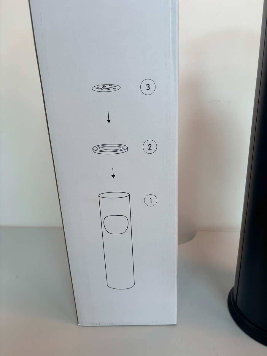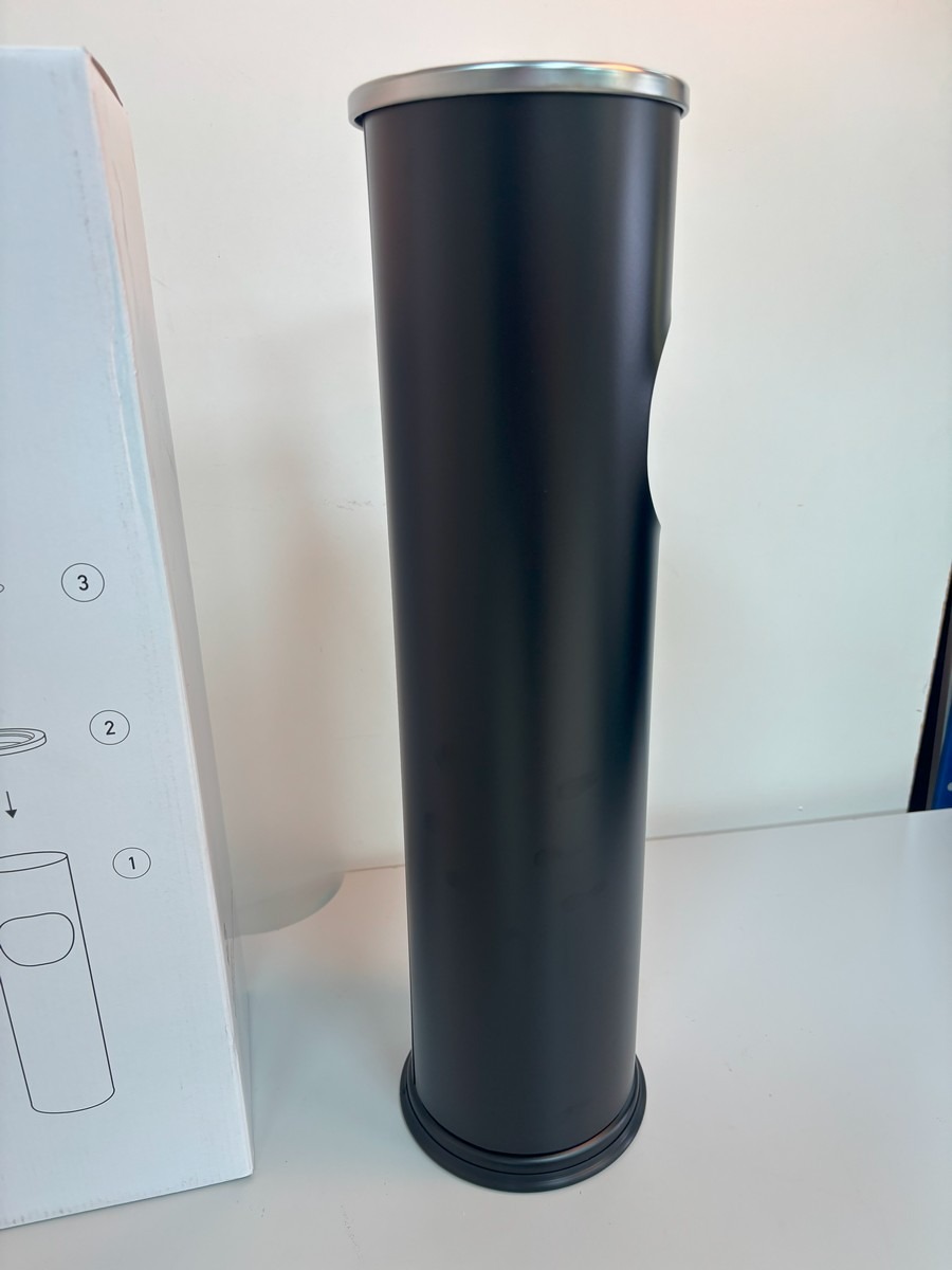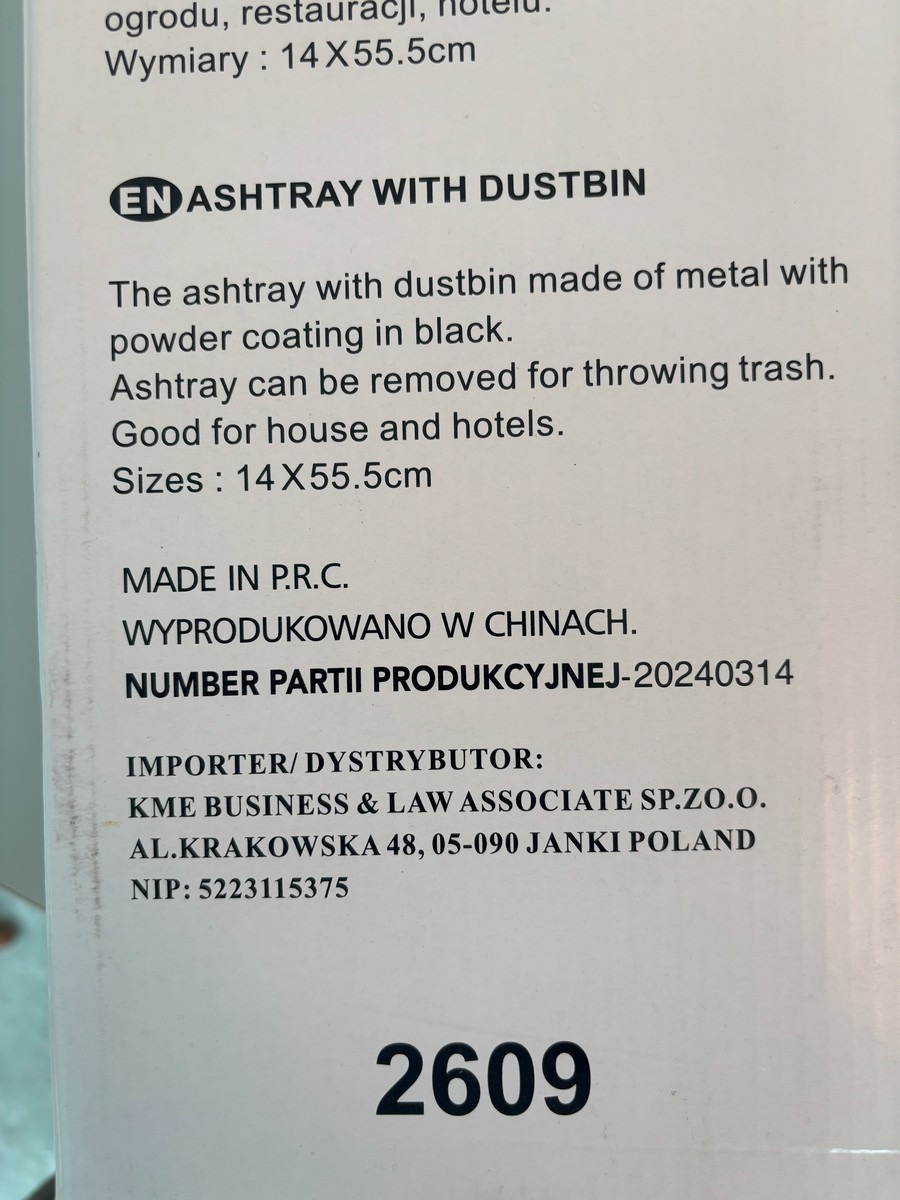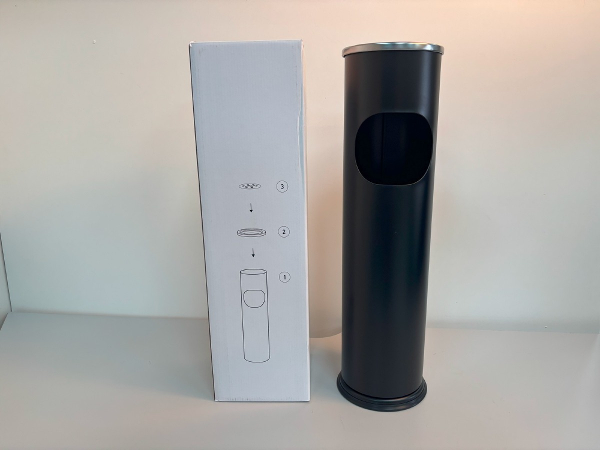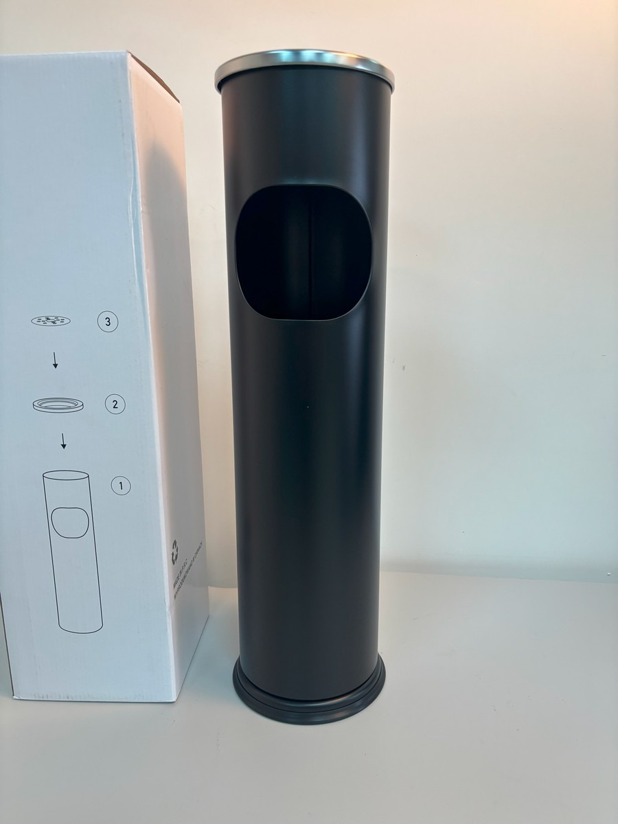 Skraldepand med askebæger i toppen. D: 14 x H: 55,5 cm. Ubrugt