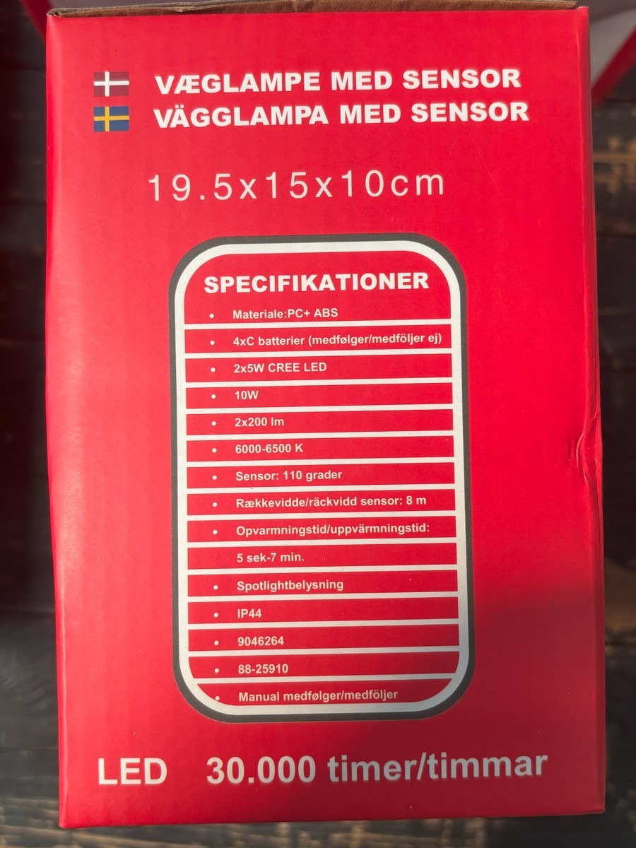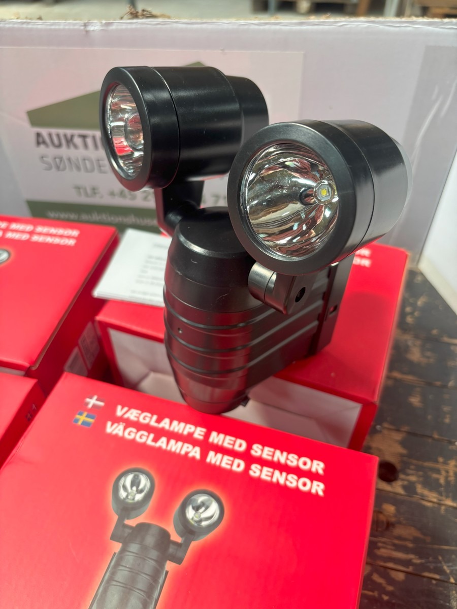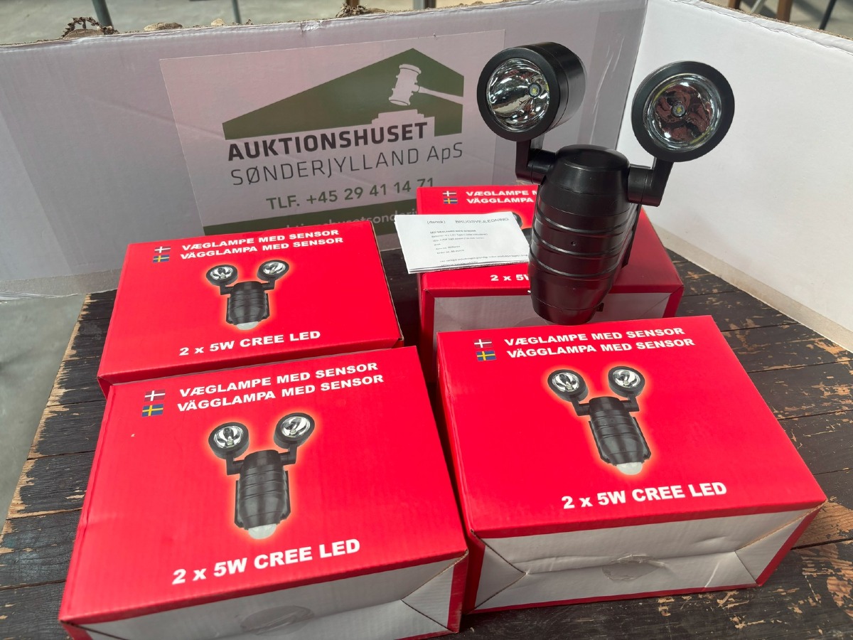 LED Væglamper med sensor sort, 4 stk. 2x5W CREE LED. Ca. levetid på 30.000timer. Væglamperne måler 19,5 x 15 x 10cm. Ubrugt og i original emballage