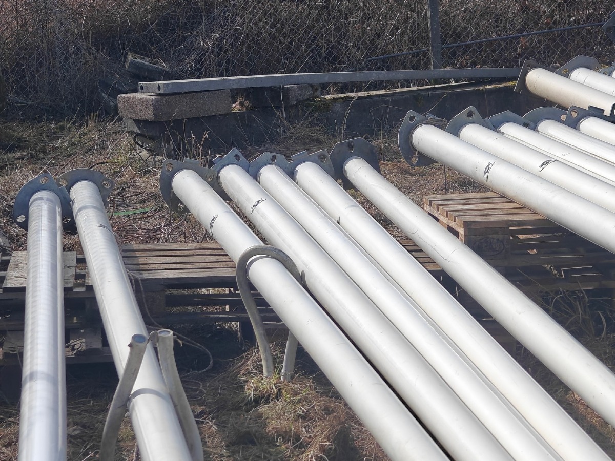 2 Glasfiber flagstænger t/erhverv. 8 m. Mrk: VM Original. Med indvendig lineføring (mgl nøgle). Påsat vippe-/ monteringsbeslag. Mål: Længde: 8 m. Brugte